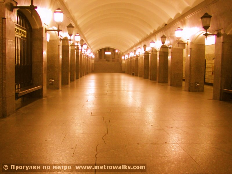 Кстати, Обухово - сложно сказать, выиграло от желтого освещения или прогиграло. Пожалуй, на мой взгляд, единственная станция, где оно смотрится нейтрально. Из-за того, что пол серый, а стены из белого камня.