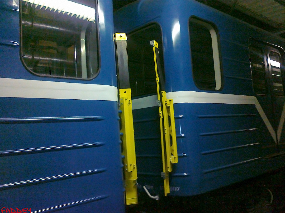 Фотографии из ТЧ-1 «Автово» новых промежуточных вагонов 81-714.5П №0107 и №0108. Автор: faddey, за что ему спасибо.