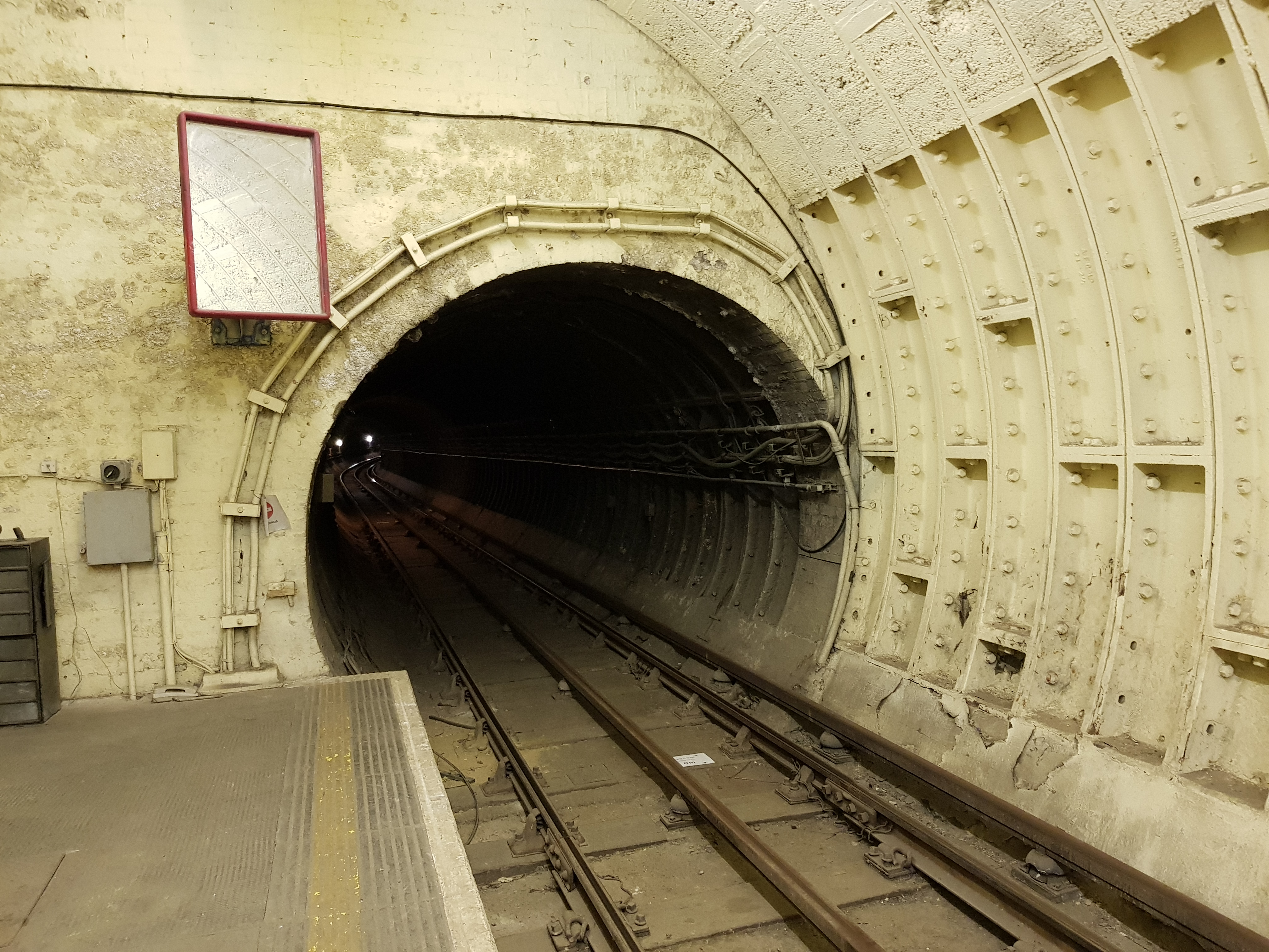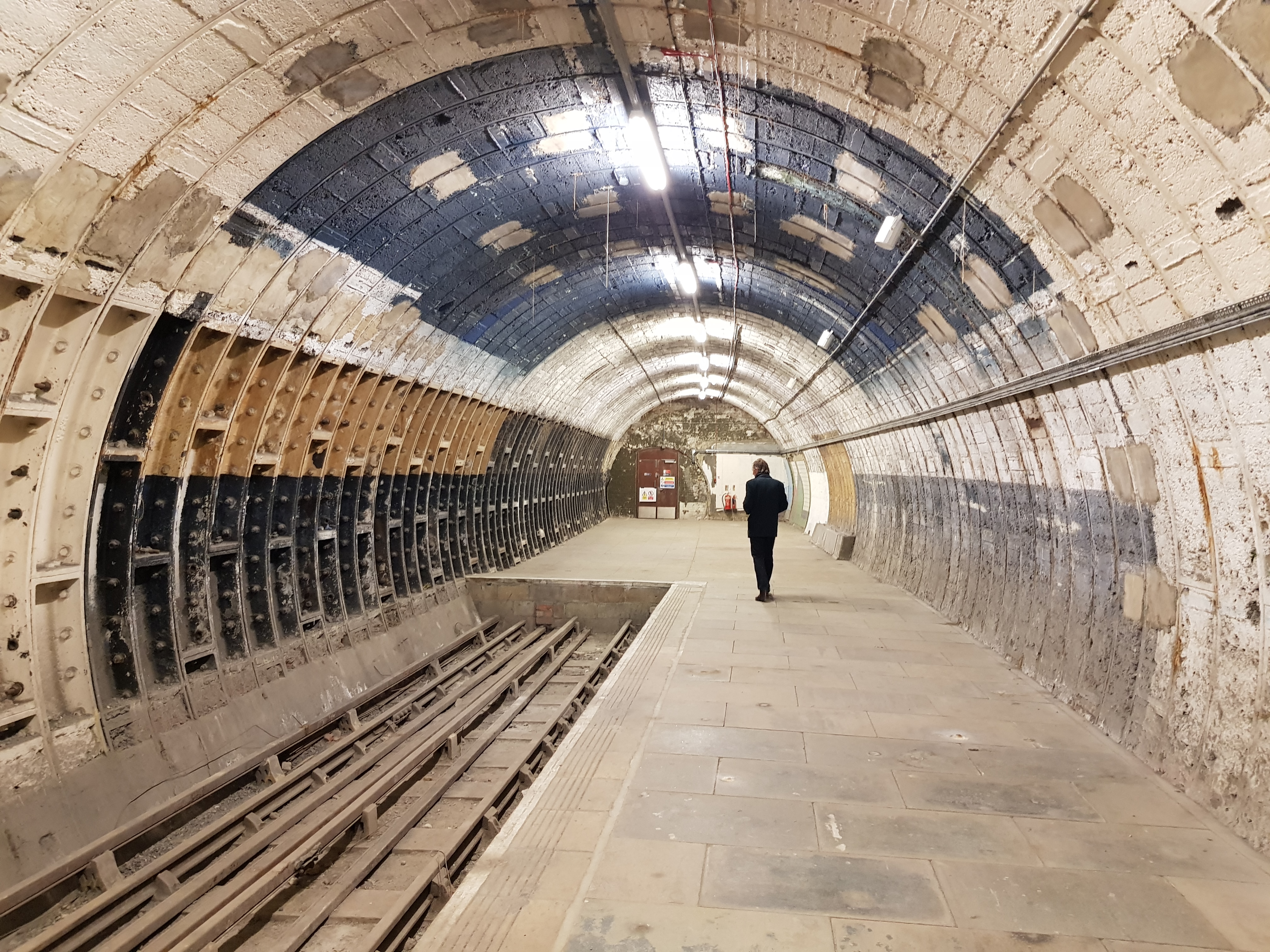 В те далёкие времена, когда лондонский метрополитен строился по принципу "разрешение на что продавят в парламенте", в результате объединения планов по строительству того, что сейчас называется Piccadilly Line, на этой линии получилась вилка посреди центра города, причём вилка на одну станцию с челночным движением, и изначально аж двухпутная. В двухпутном исполнении она просуществовала с 1907 по 1917 год, после чего один из путей был ампутирован, а в 1994 году использовать старые лифты стало страшно и станцию закрыли от греха подальше - всё равно на ней никто не ездил, но закрыли не наглухо, а просто перестали использовать в пассажирском движении (и заодно закрыли две платформы на станции Holborn), зато на неё с удовольствием пускают киношников и туристов (билеты, правда, раз в месяц выбрасывают, а то и реже - так что следует помнить поговорку "in der großen Familie nicht Klüven klatz-klatz").