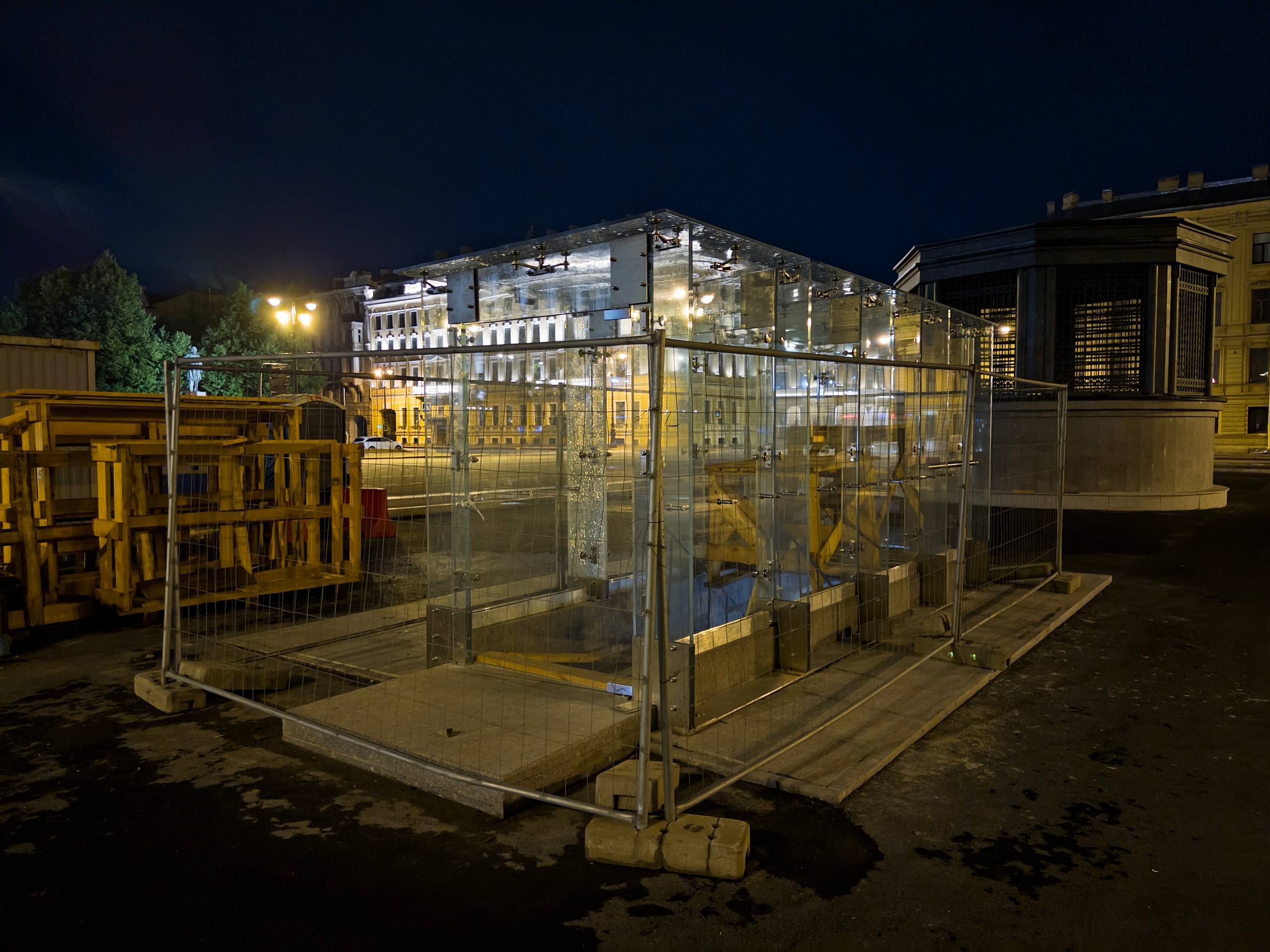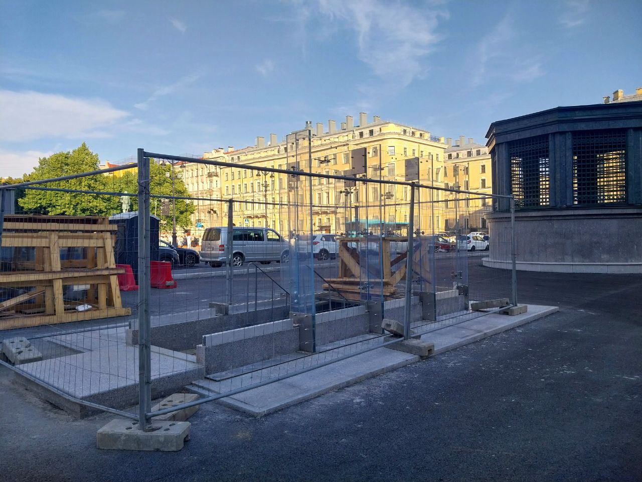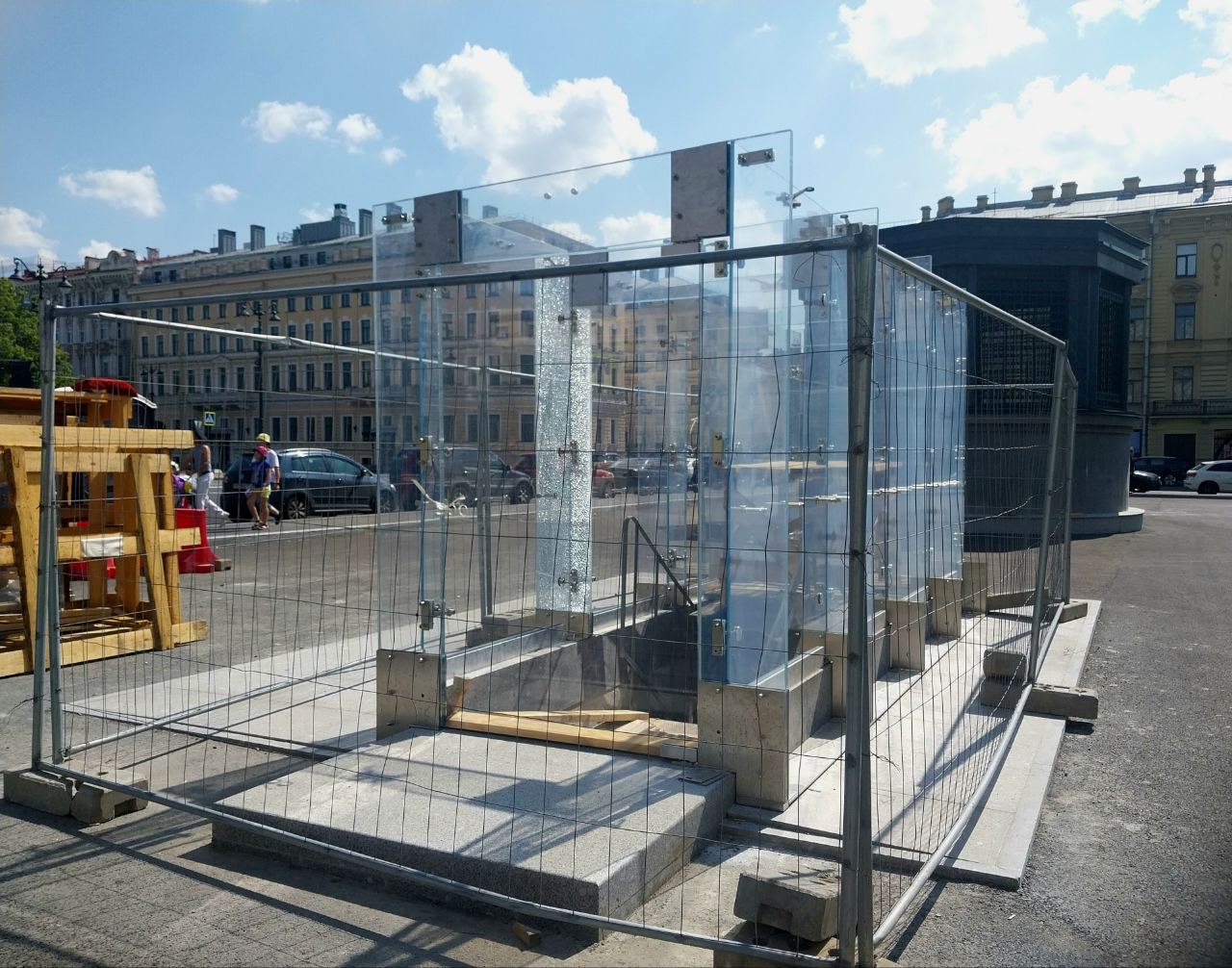 В стеклянном павильоне эвакуационного выхода установили стеклянную крышу.