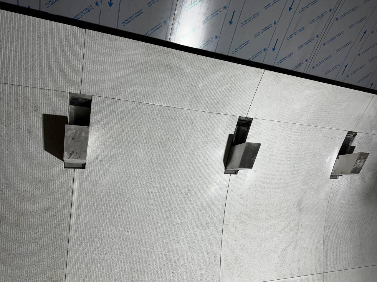 Временная стенка внутри прохода с проёмом под противопожарную дверь.