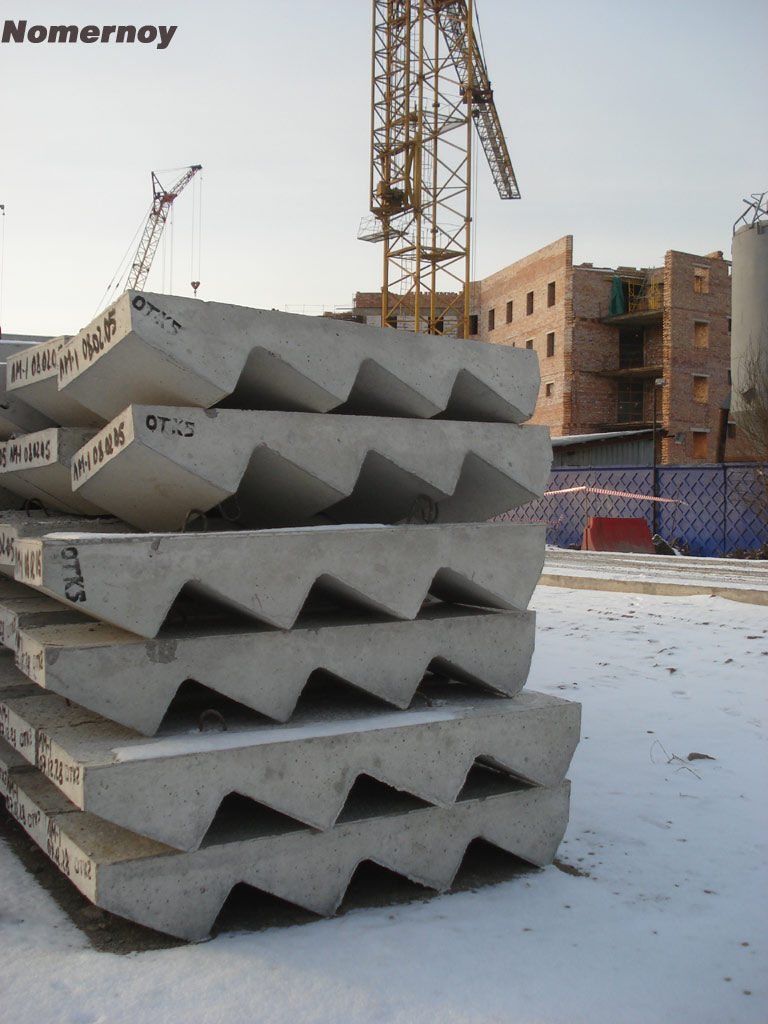 На стройплощадку наклонного хода завезли полный комплект балюстрадных лестничных маршей и плит перекрытия...