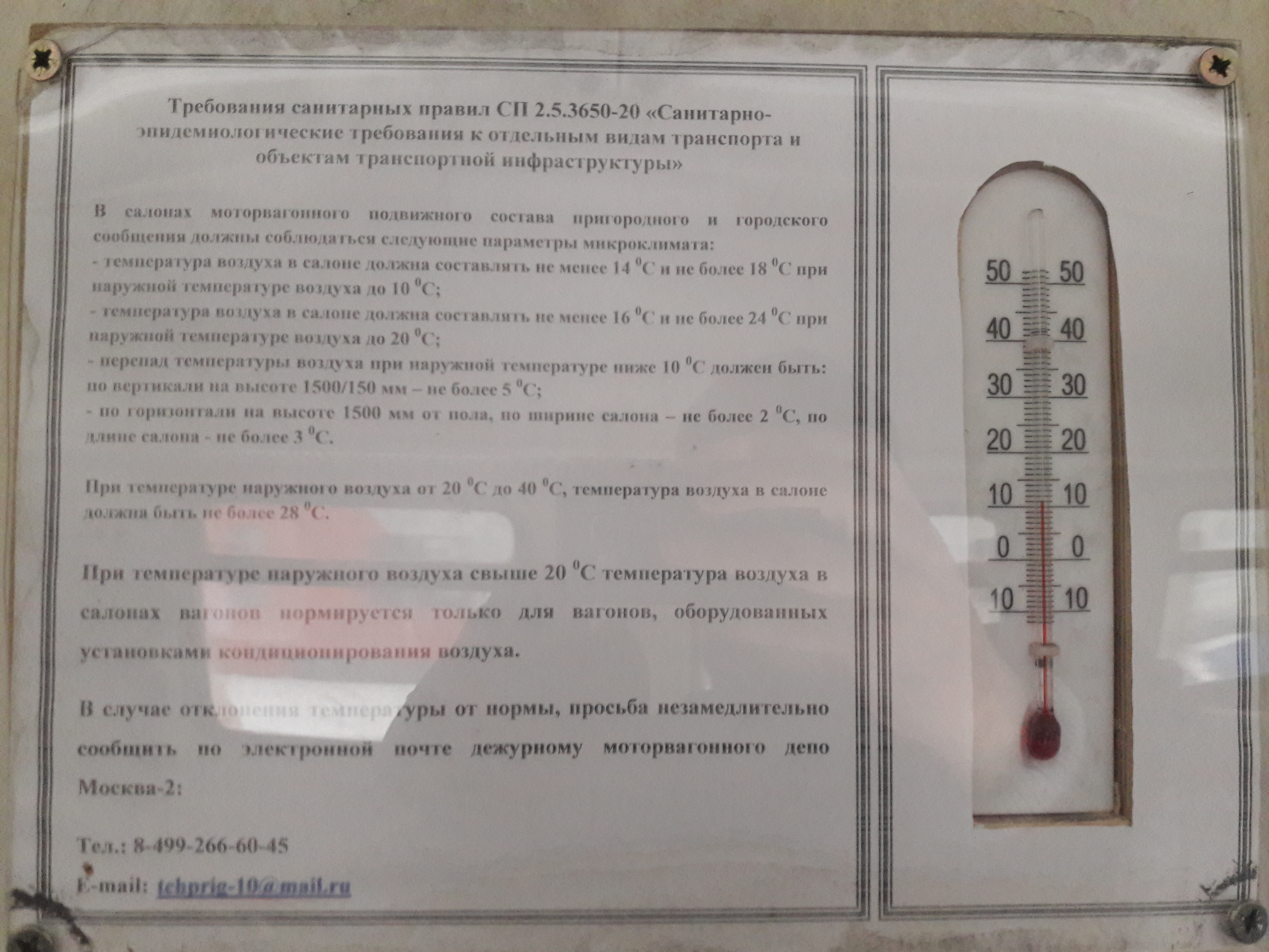 В некоторых ЭДхах на Ярославском направлении есть памятка о соблюдении температурных норм в зимнее время и градусник.