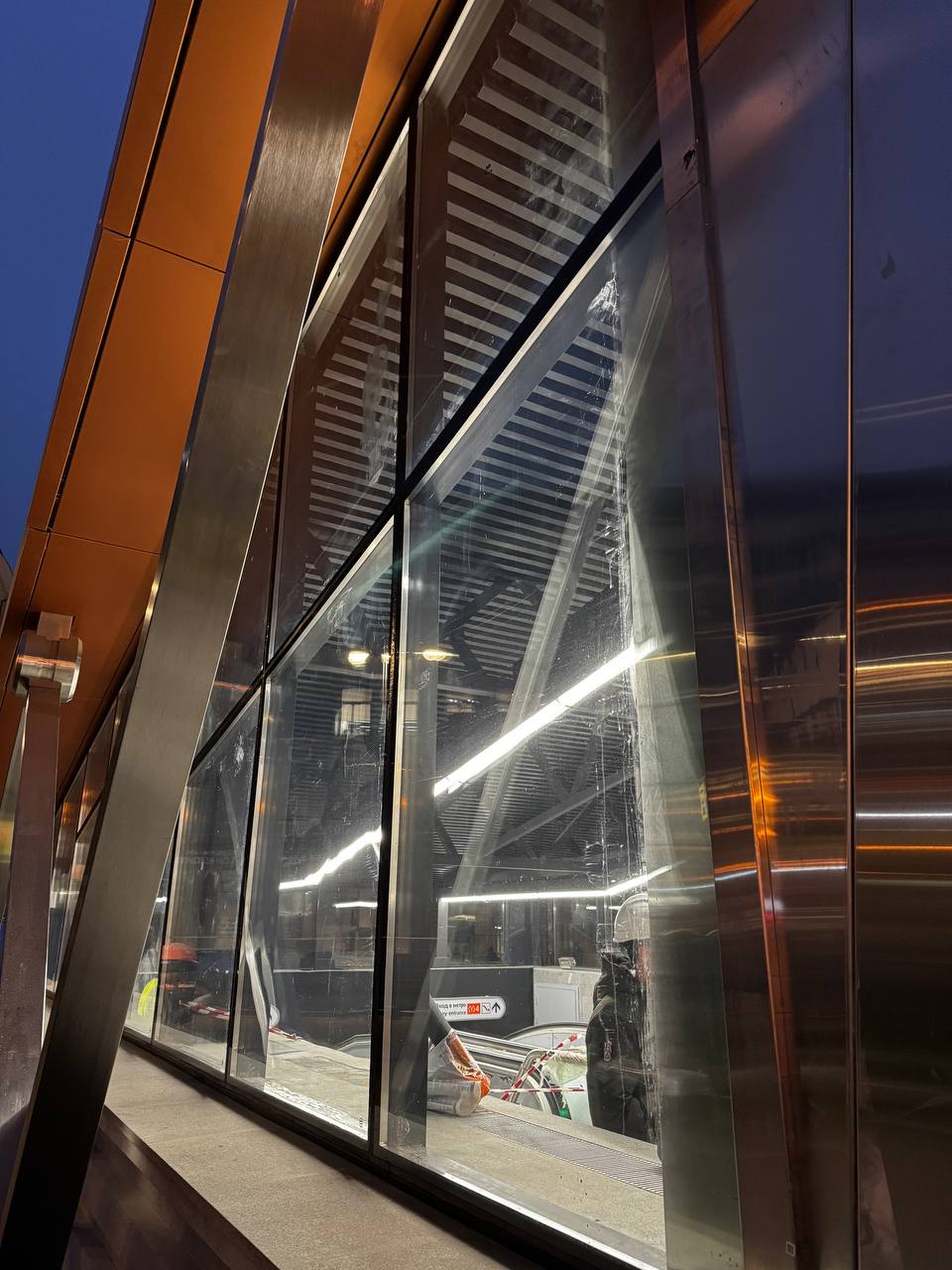 И световые карнизы между пилонами разве не должны снизу быть закрыты "жалюзями" как на рендере?