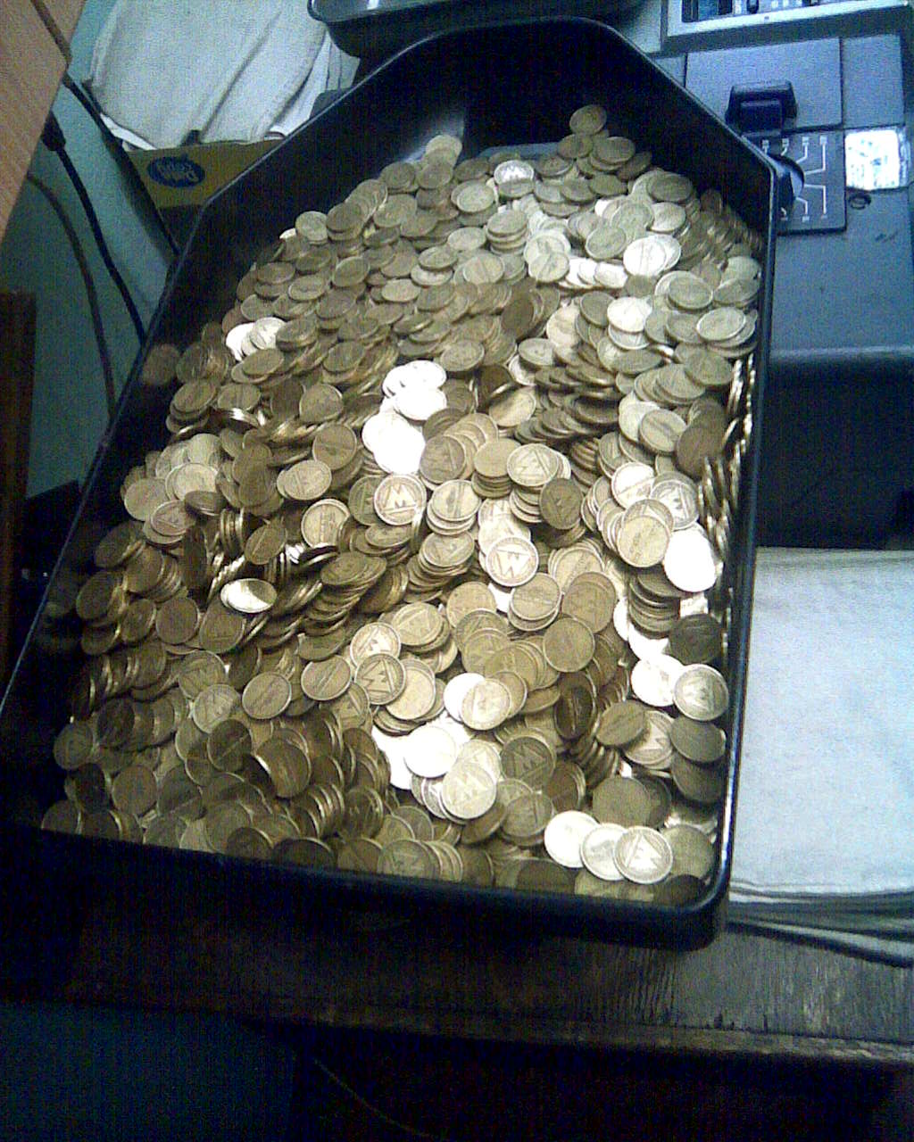 Жетоны никто поштучно не разглядывает. Их вынимают из турникетов мешками, сгружают в счётные автоматы мешками и автоматы загружают мешками.