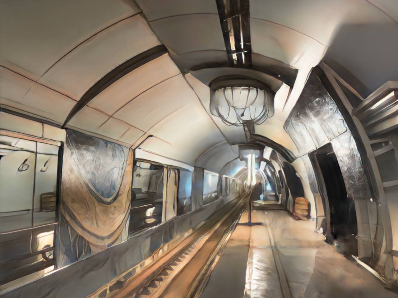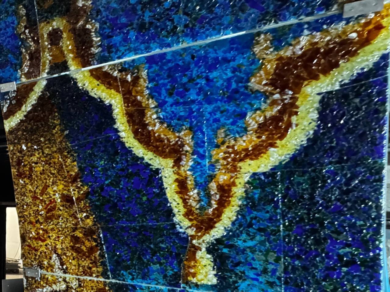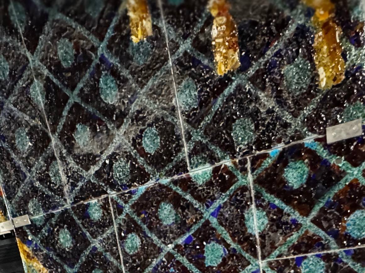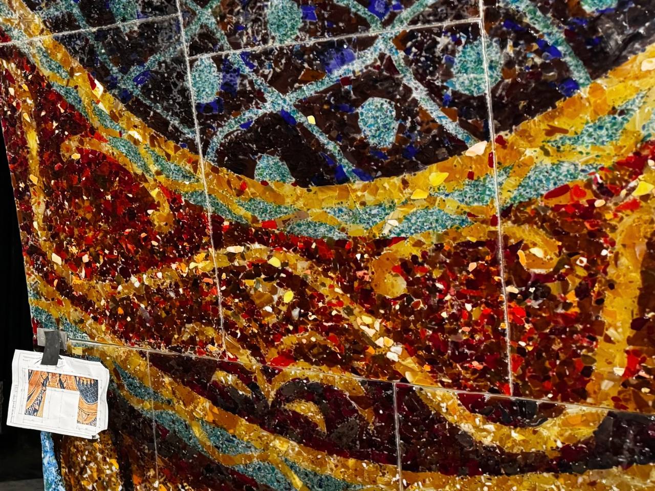 Фотография Подземника из истории из Телеграма. Как вы можете видеть, на фотографии мы видим очень подробно фрагмент витража порталов на станции Театральная