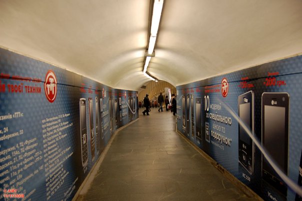 ух блин... я вообще довольно спокойно, иногда даже положительно к рекламе отношусь (например, кузова вагонов и длинные безликие переходы-"кишки", обклееные рекламой - ИМХО нормально, если не слишком пестро-шизофренично), но эти фотки из Киева - это что-то с чем-то...