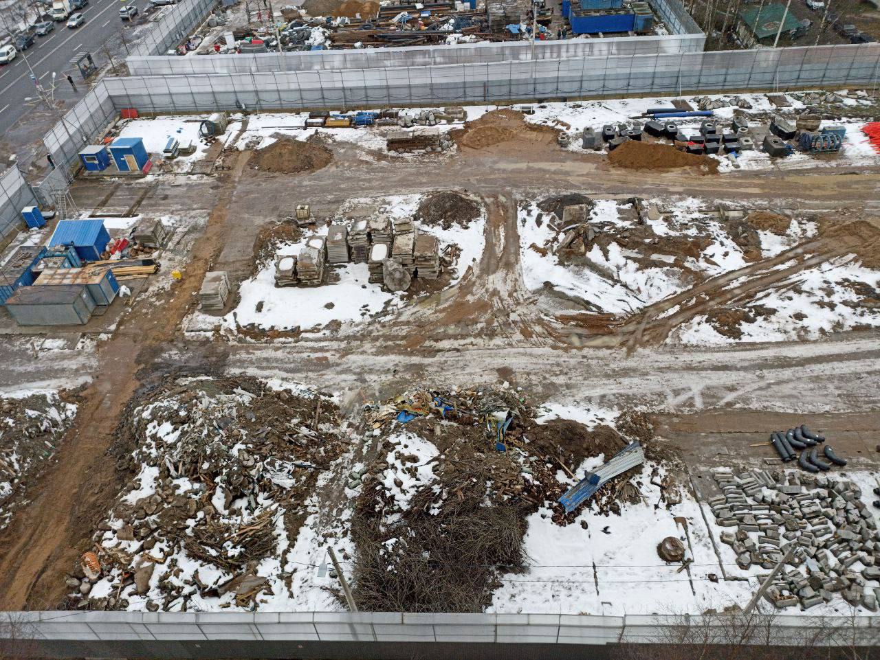 На поверхности станции продолжаются работы по возведению ограждающей конструкции (стены в грунте). После сооружения стены в грунте начнутся работы по разработке котлована. Этот участок тоннеля будет откопан и демонтирован, как это делали на станциях «Дунайская» и «Беговая». Только в предыдущие разы станция строилась по технологии «top-down» (сверху вниз), и на момент начала демонтажа тоннеля сверху него уже была плита перекрытия. А сейчас котлован будет разрабатываться на весь объём, а затем внутри него будут возводить станцию.