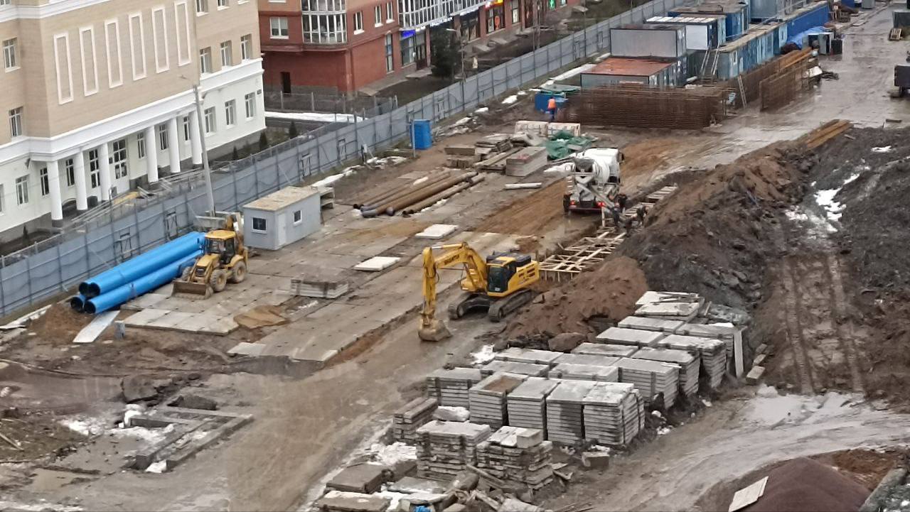 В настоящее время ведутся работы по сооружению «стены в грунте» - ограждающей конструкции котлована будущей станции.