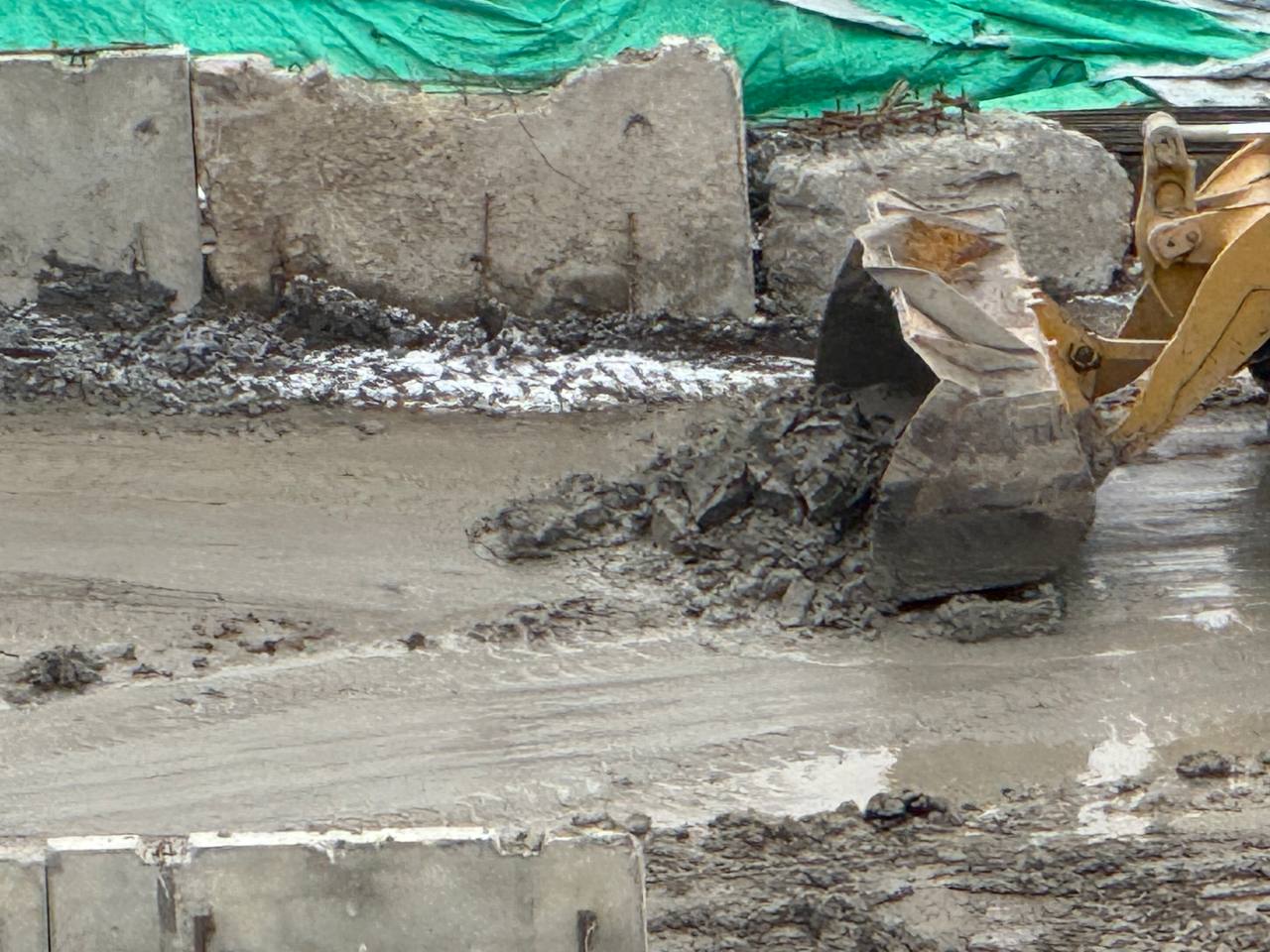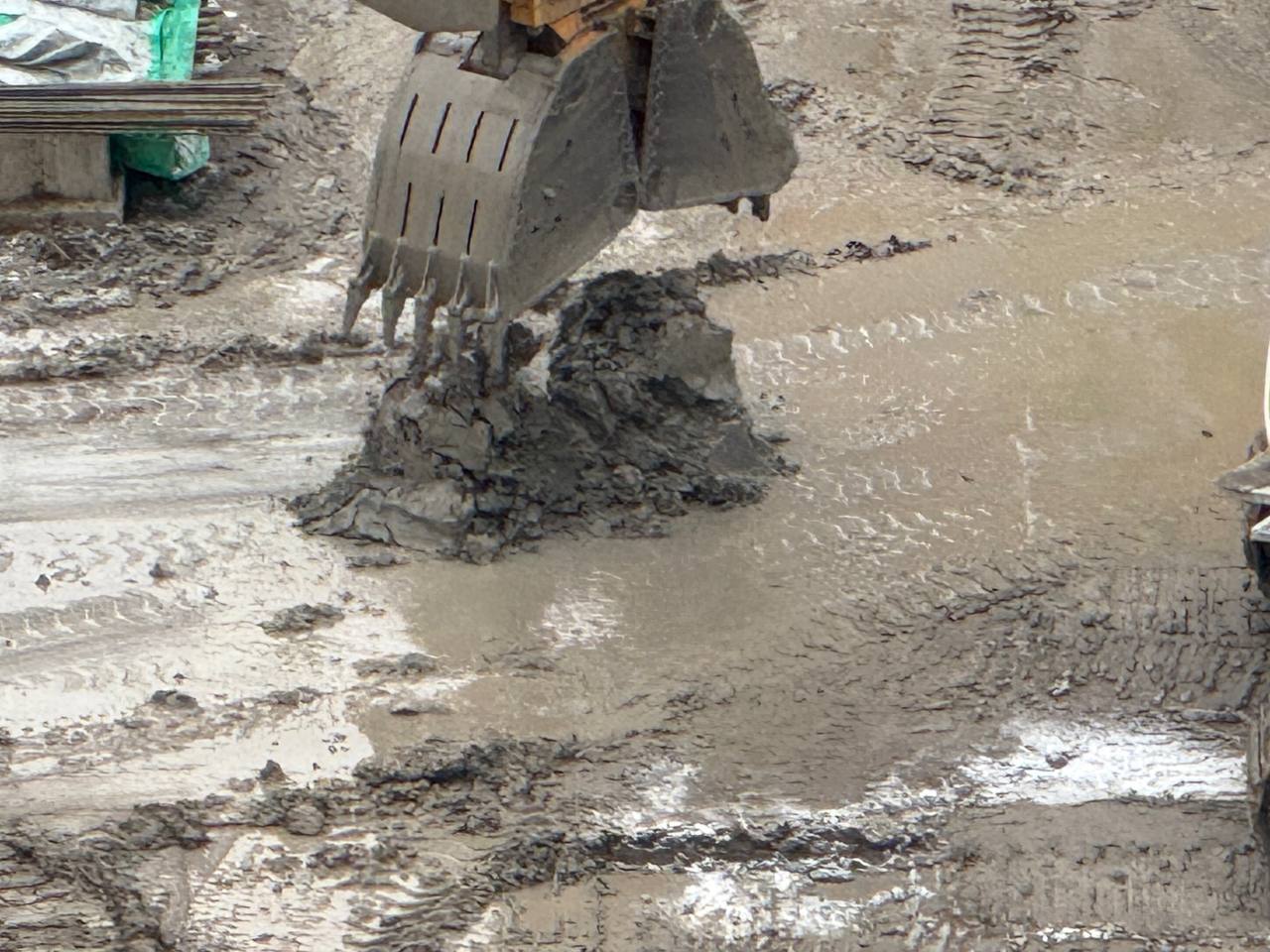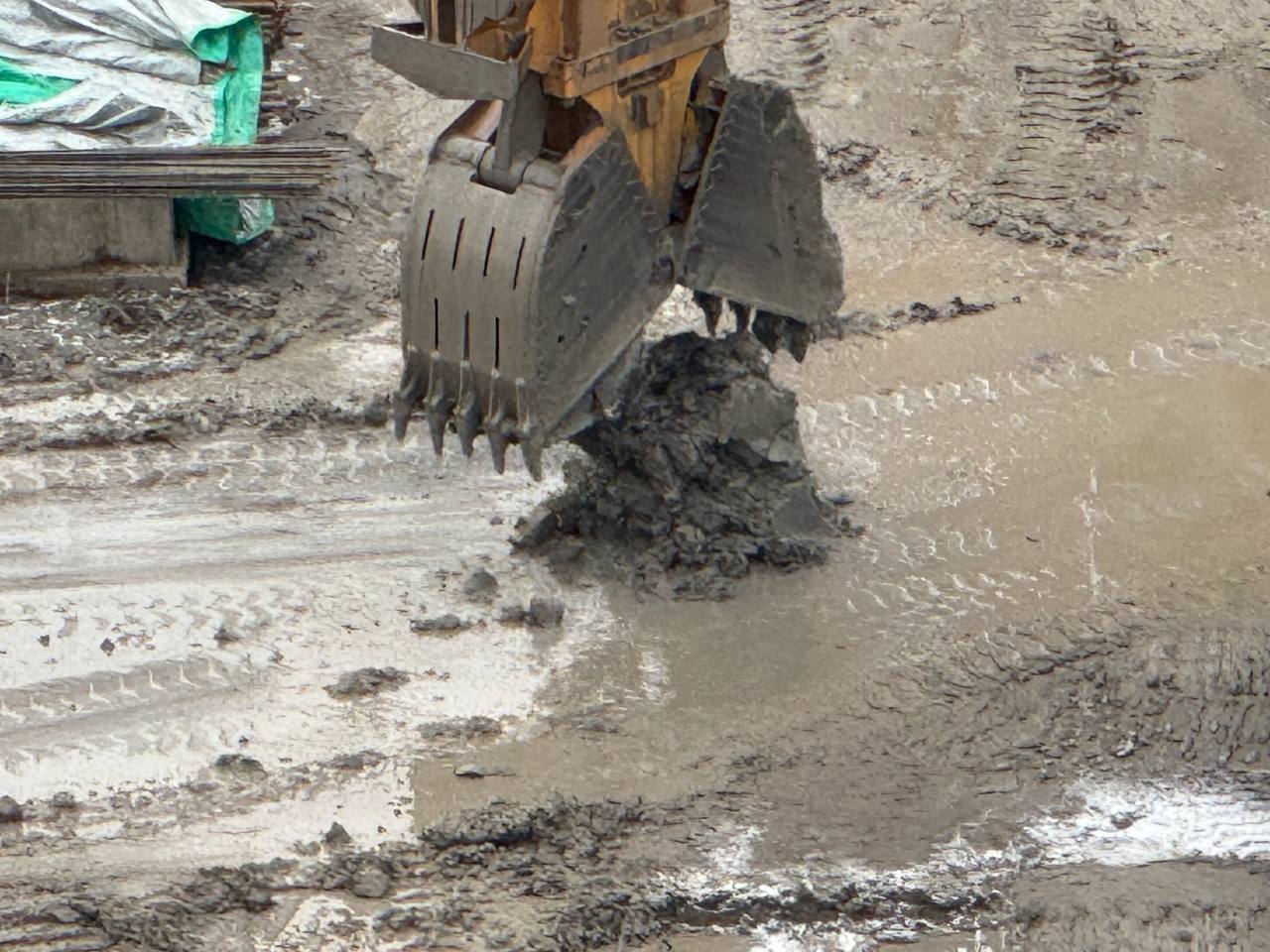 Станция метро «Богатырская» (Туристская). Работа грейферного ковша.
