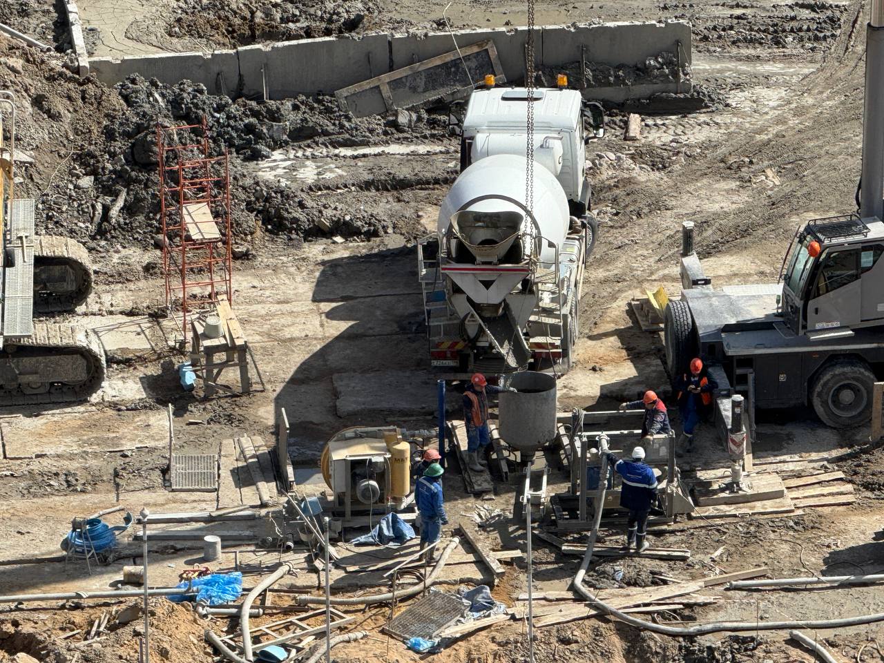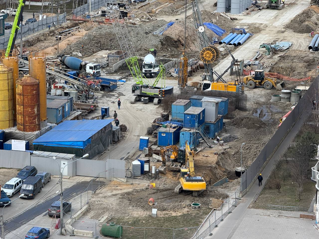 На строительной площадке станции метро «Богатырская» продолжаются работы по формированию стены в грунте.