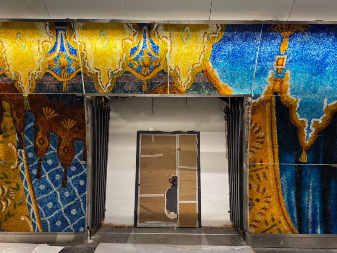Многим удалось полюбоваться станцией «Театральная» Лахтинско-Правобережной линии Петербургского метрополитена из окна вагона проезжающего её состава. Хочу вам поближе показать фьюзинги, которыми оформлены порталы пассажирских проемов станции.