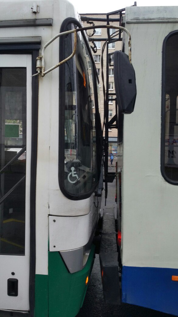 Еду, значить, я сегодня по улице Савушкина в автобусе №93, никого не трогаю и вижу возле дома № 83 по вышеозначенной улице прелюбопытное событие - загадошную аварию с участием автобуса ТП. Хочется спросить, как же это оно так, Михалыч?!