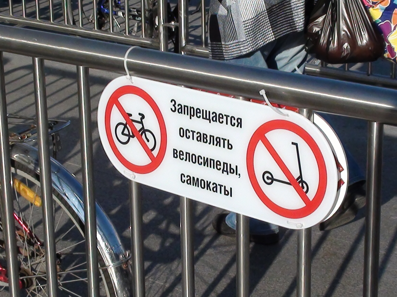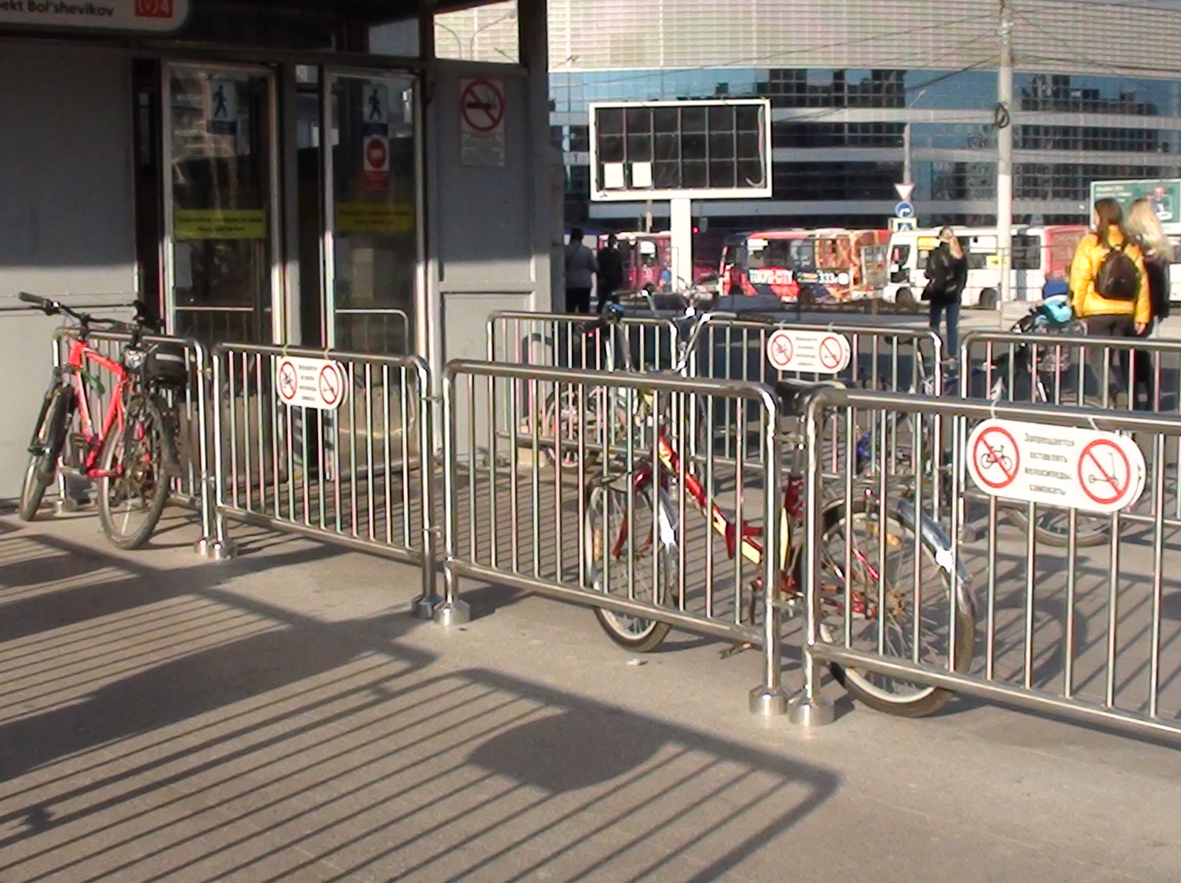 На Больневиков установили решётки, и повесили таблички, что запрещается оставлять велосипеды и самокаты. В итоге, эти решётки как раз для этого и стали использовать :D