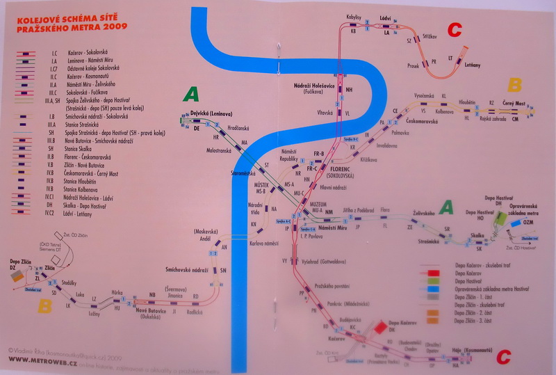 Парочка сканов: схема пражского метро с путевым развитием и технические характеристики вагонов Еčs.