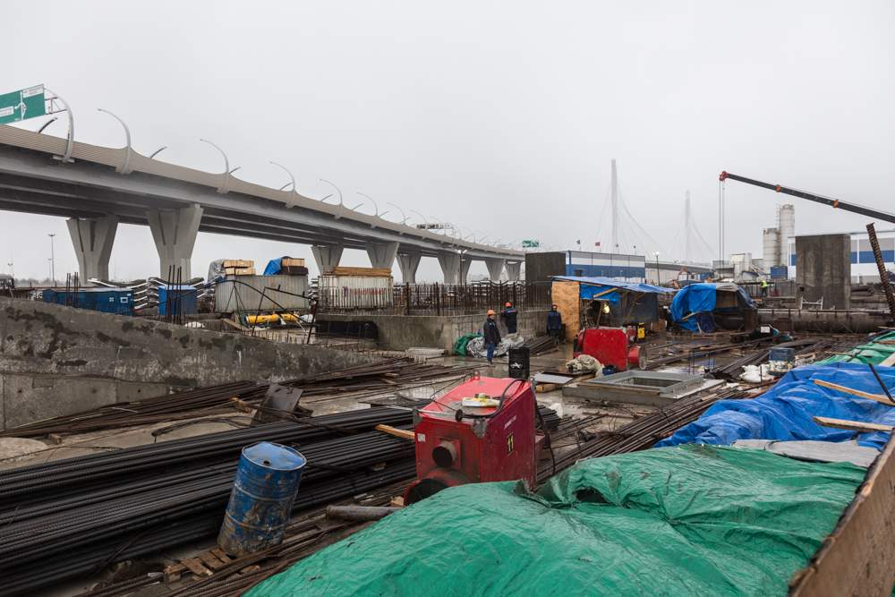 — Сейчас мы прошли участок Западного скоростного диаметра. Можно сказать, что доехали до Васильевского острова. ЗСД был серьезным участком, потому что мы проходили в непосредственной близости от свай, на которых держится диаметр. Эти грунты хороши тем, что здесь минимальны усадки.