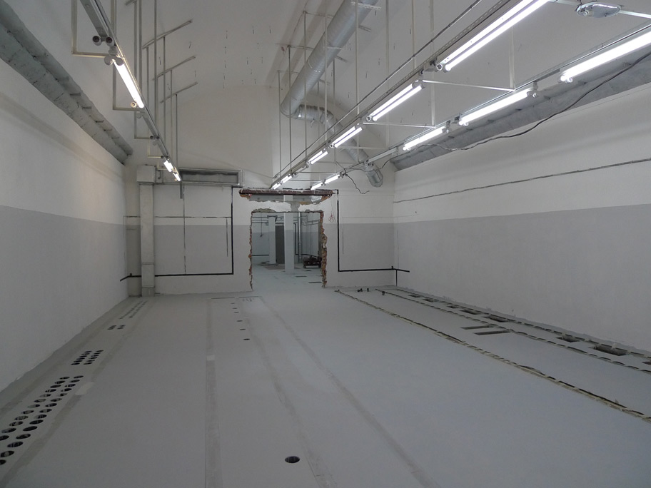 Помещения СТП. Практически всё готово к приёму оборудования. А проём в стене - технологический. После доставки крупногабаритного оборудования его аккуратно заложат кирпичом и установят дверь.
