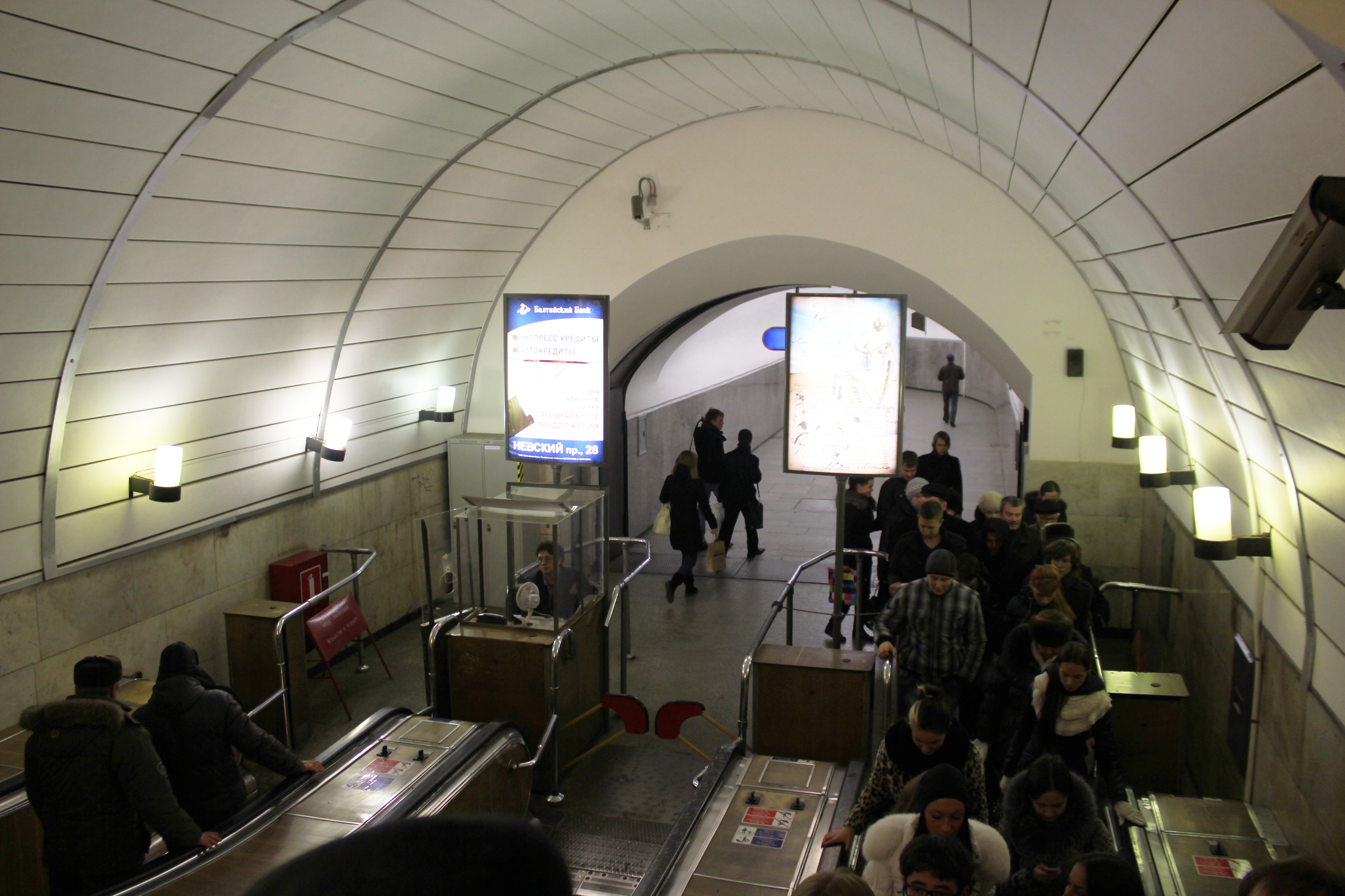 Да, вестибюль тесный. Но он стал гораздо теснее после того, как был ликвидирован выход на набережную канала Грибоедова и выполнено строительство касс. Раньше он был намного просторнее.