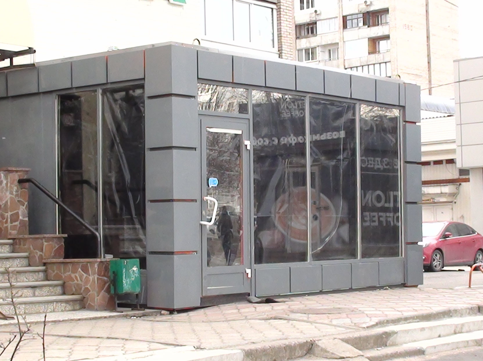 Какие-то ларьки вовсе не успели открыться. Их привезли, но внутри ничего нет. Просто заклеено чёрными пакетами.