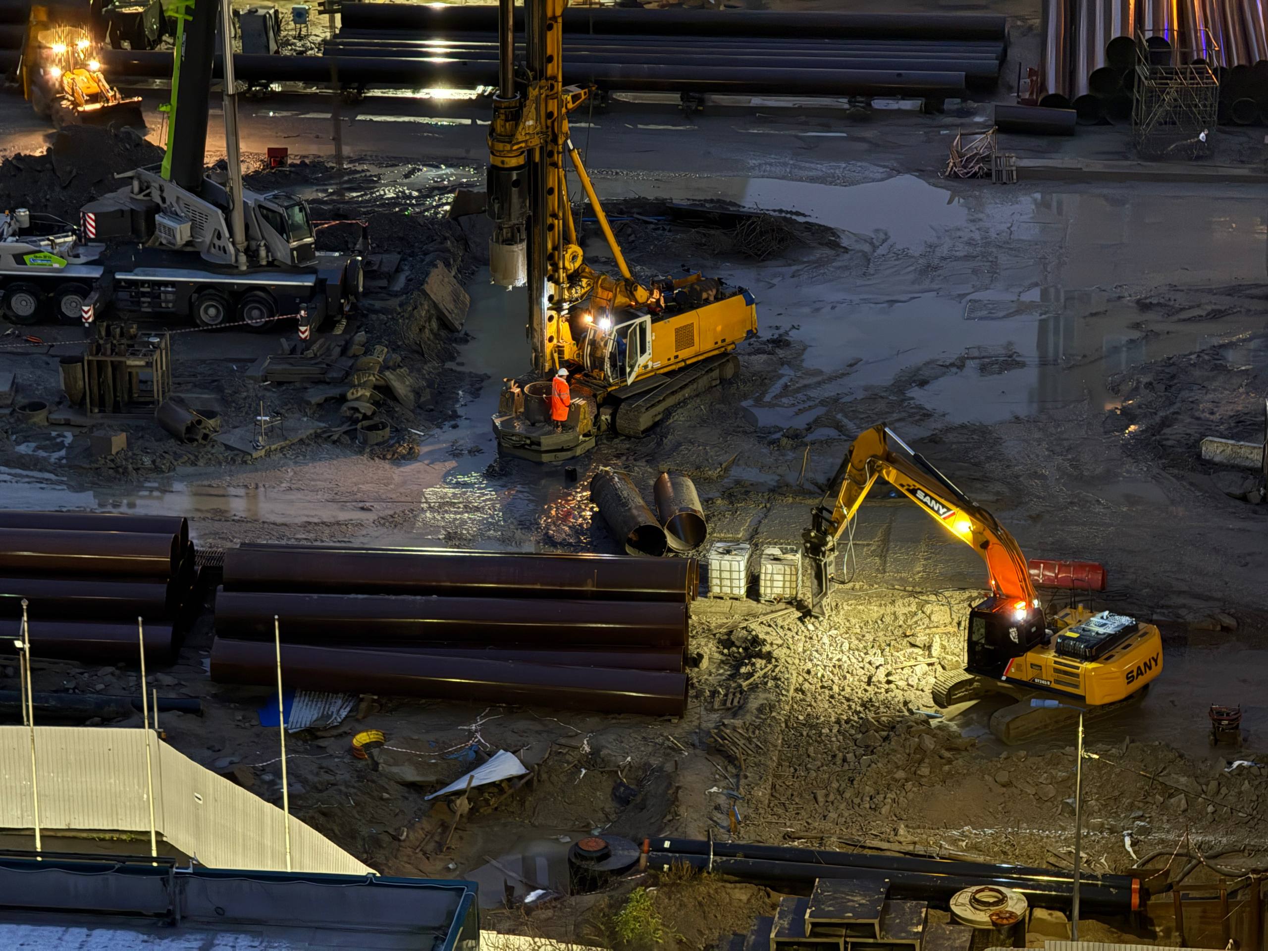 Вроде закончили сооружение стены в грунте? На фото не видно грейфера