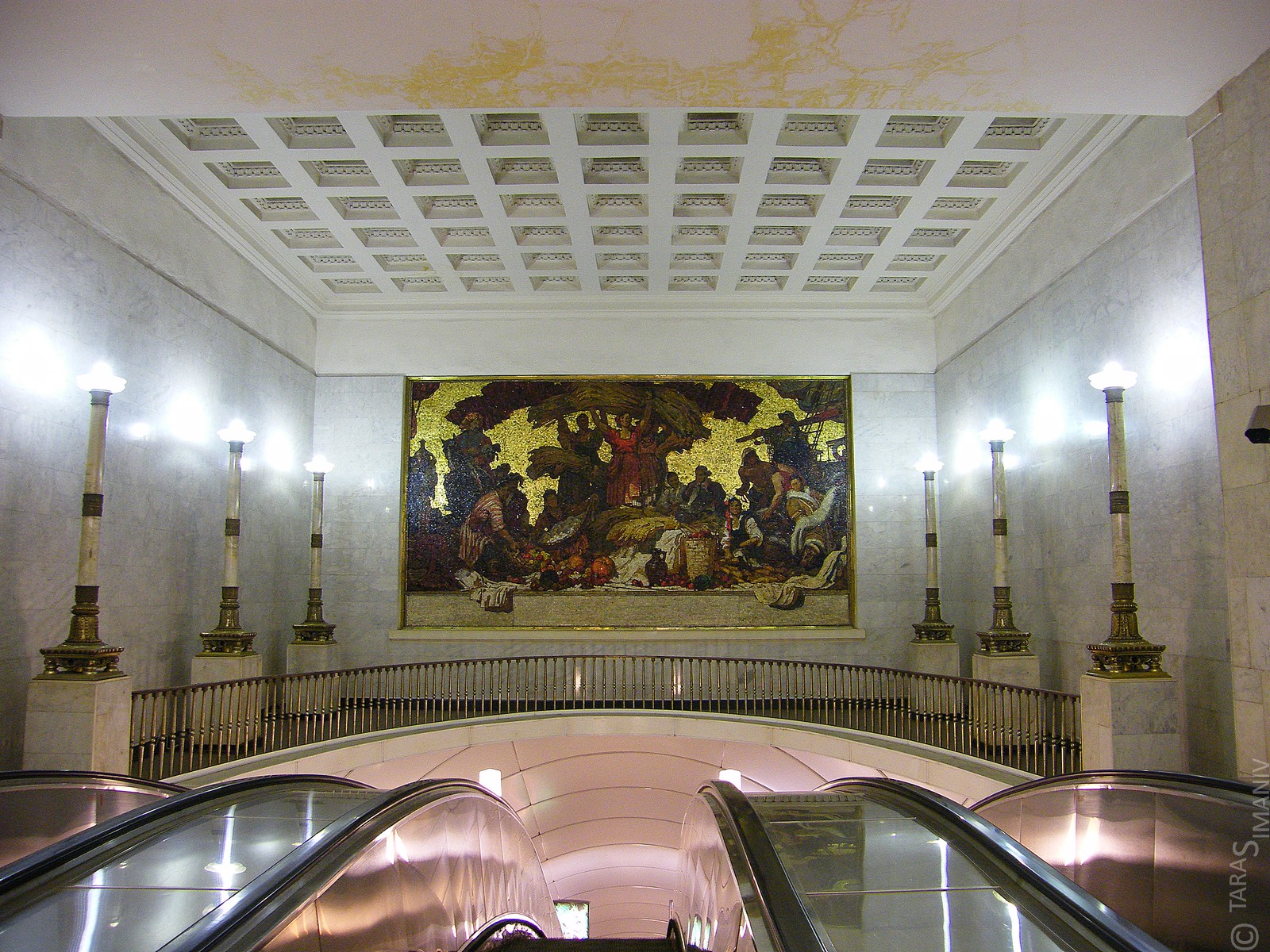 Как уточнили в ведомстве, метрополитен знает о том, что в украшении станции отсутствуют символы советского времени (серпы, молоты и звезды), отметив, что они были украдены вандалами еще в 1990-е годы. В настоящее время действует программа по реставрации и возвращению украденных элементов декора.