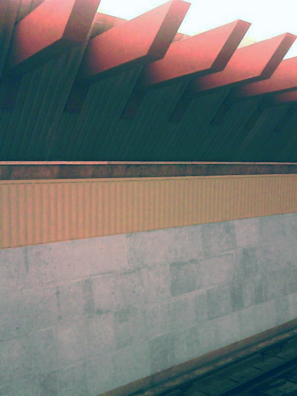 Да, это правда, и это уже полнейший ... конец станции. Анодированные плафоны красят бурой краской! Это надо же было догадаться до такого! (на фото 2 - новая "облицовка", профнастил и покрашенные плафоны; фото, к сожалению не особо качественное, телефонное).