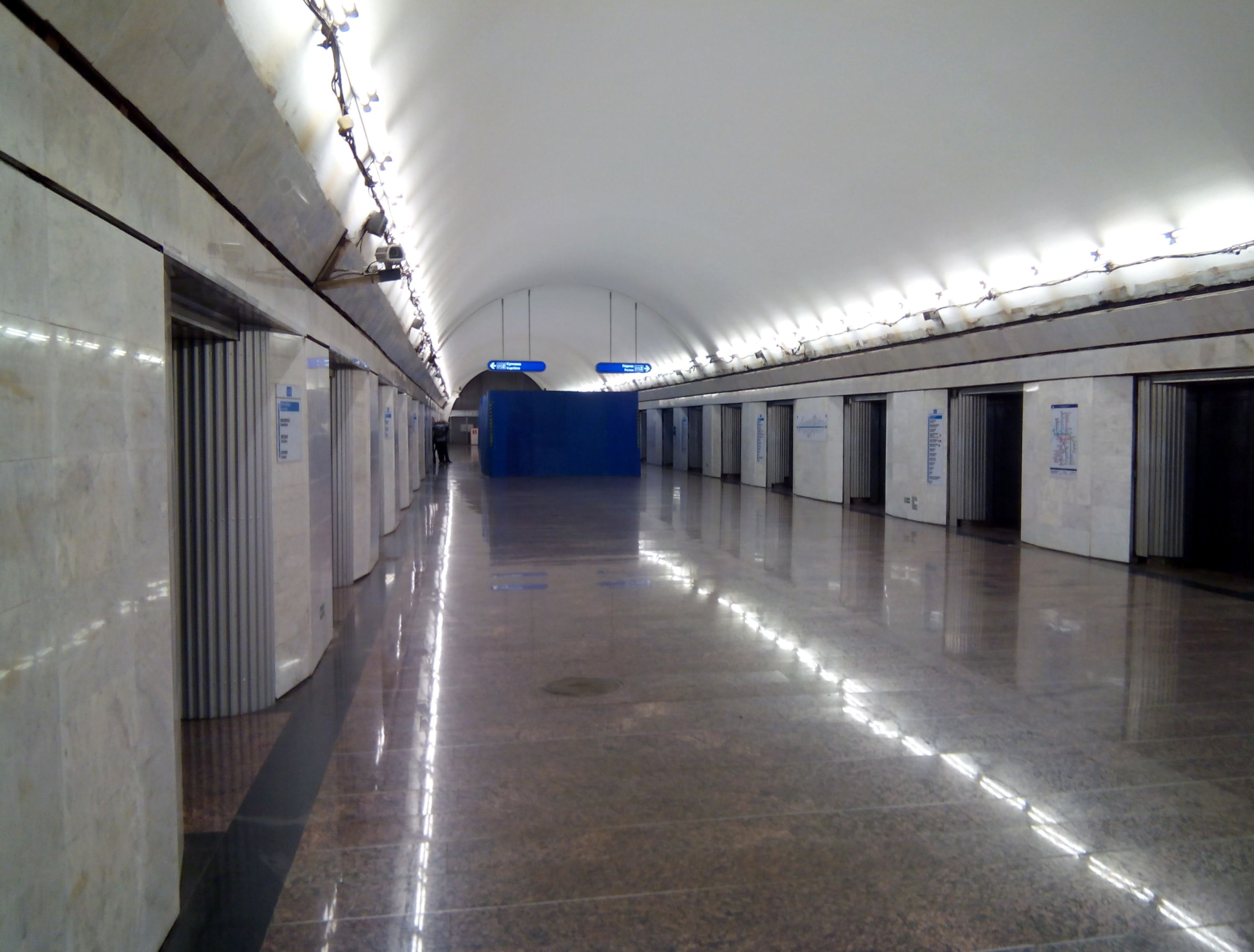Сейчас на станции. Пол почти доделан, стены тоже. Отделывают металлопрофилем проёмы возле дверей - слева уже новый вариант, а справа - ещё старый.