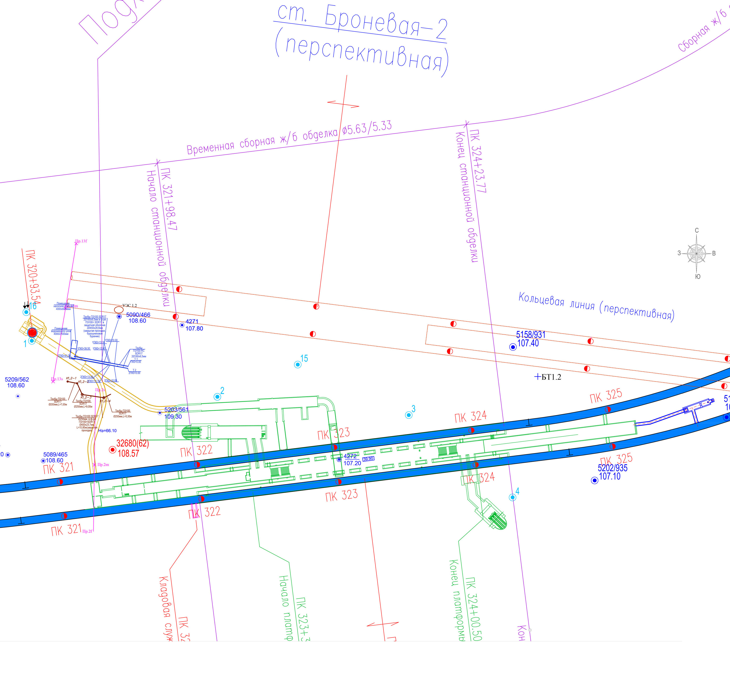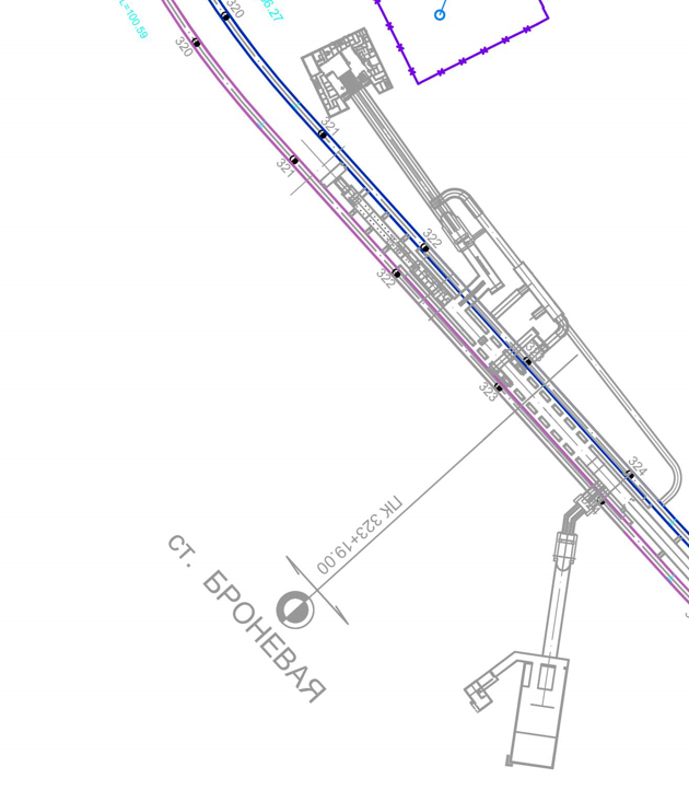 планировка станционного комплекса Броневой. Как видим, как и на всём втором участке ККл, увеличили количество проходов до десяти в каждый БСТ.