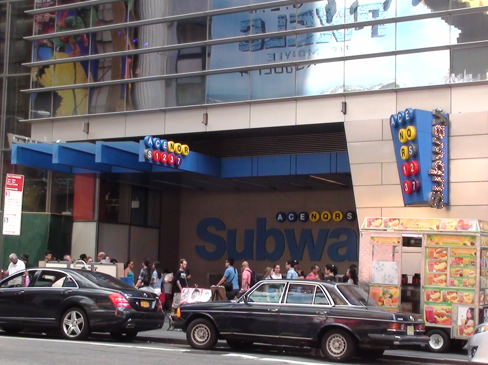 Вообще, kot всё правильно сказал, касаемо Times Sq, т.к. я забыл сказать, что узел Times Sq-42 St состоит не из 8, а из 11 маршрутов. Сегодня нашёл вход, где все 11 маршрутов (см. фото). Итого, так и получаем, 5 залов. Вкратце, касаемо Times Sq ситуация следующая: