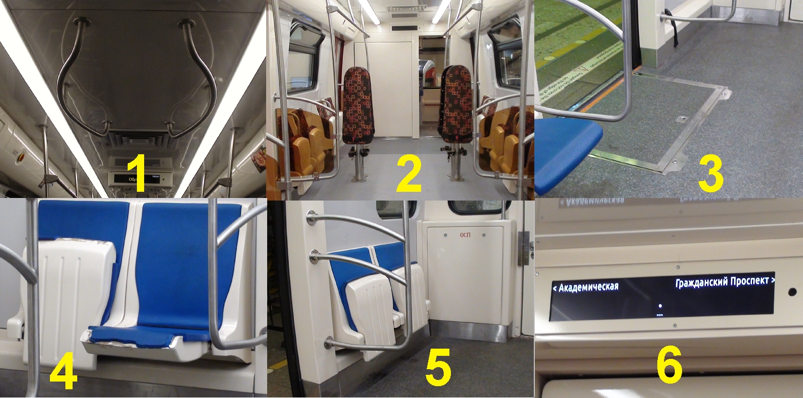 2. "Гладильные доски" если уж есть в ТЗ, то имел смысл расположить их в задней части вагона, т.к. у кабины часто забегают люди, и не хватает места. На многих станциях выход из первой/последней двери состава. НеВа пример годной реализации.