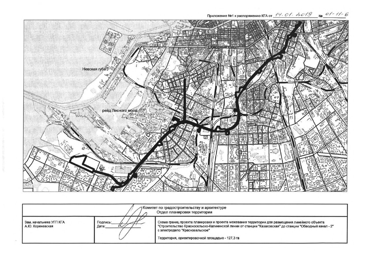 Подписано Распоряжение КГА от 14.01.2019 № 01-11-6 "О подготовке документации по планировке территории для размещения линейного объекта «Строительство Красносельско-Калининской линии от станции «Казаковская» до станции «Обводный канал - 2» с электродепо «Красносельское». Срок подготовки материалов - 25.12.2019 г.