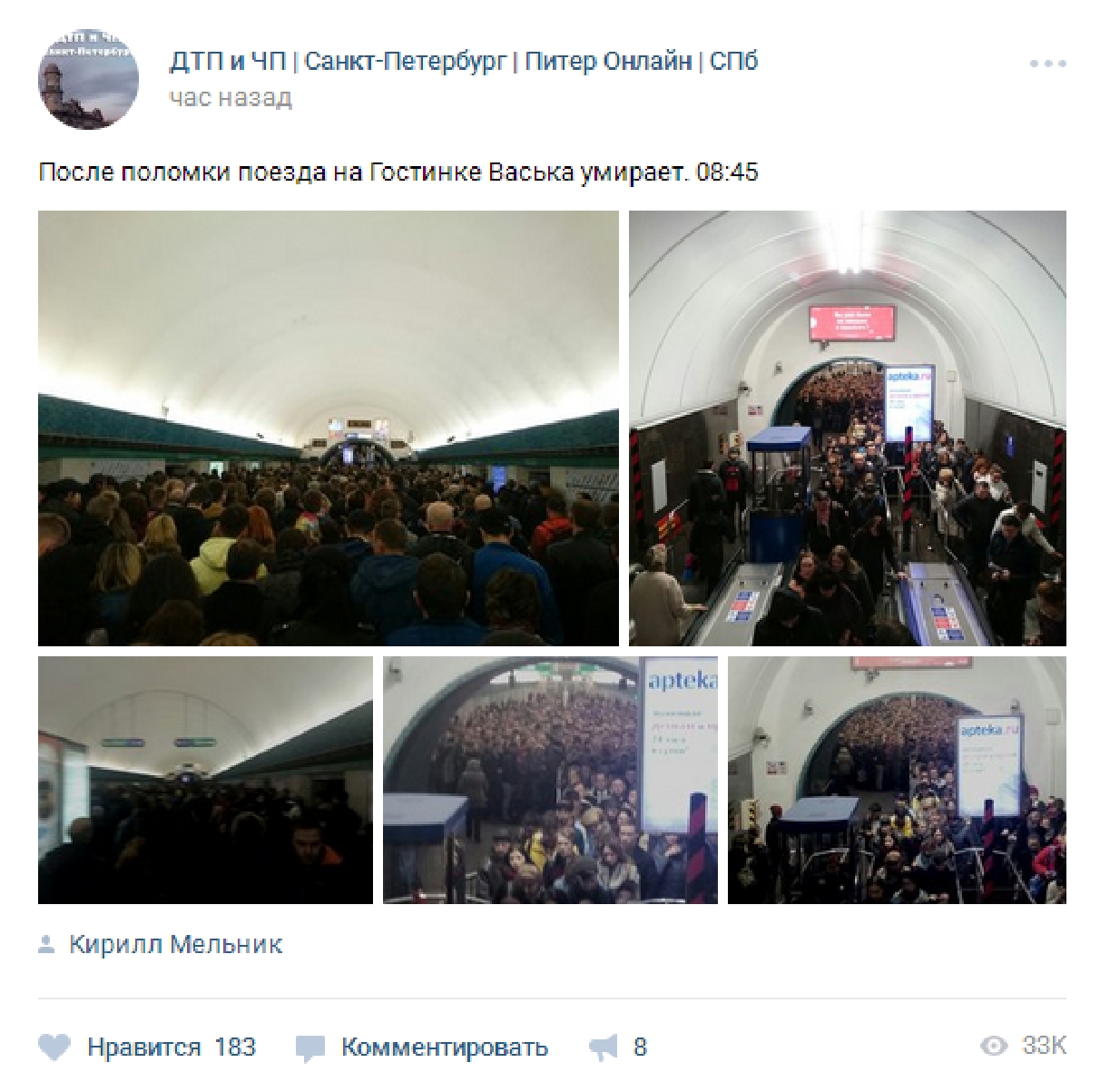 И вновь поломка поезда. Пишут, что Юбилейный. На Ваське фарш.