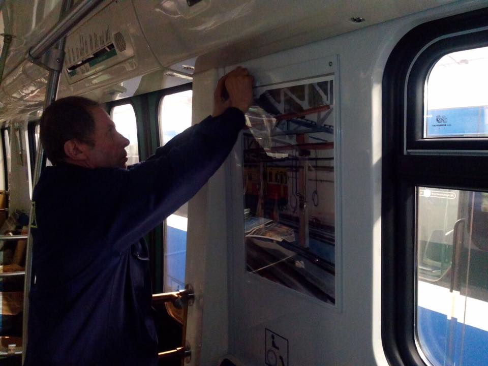 Завтра на Линию 3 выйдет состав «Вернисаж», в вагонах которого разместились картины из жизни электродепо Петербургского метрополитена.