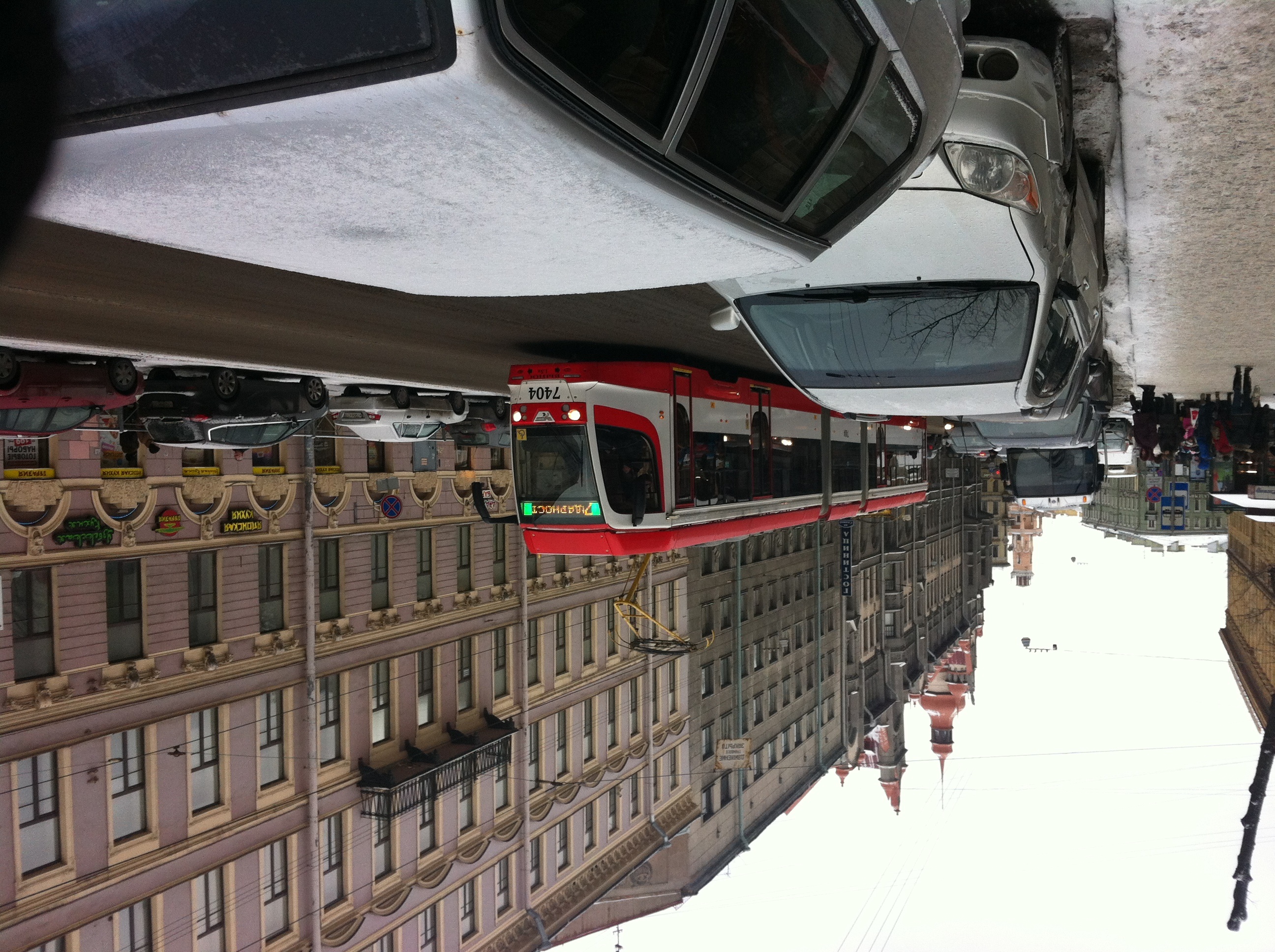 Обкатывали на пару с БКМом линию. Шпиъонское фото на калькулятор прилагается. Трамвай вернулся на Садовую.
