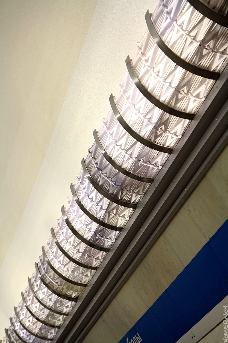 посмотрите на эти плафоны! это же наследие сталинской архитектуры. правда, парабола в торце зала все несколько осовременивает.