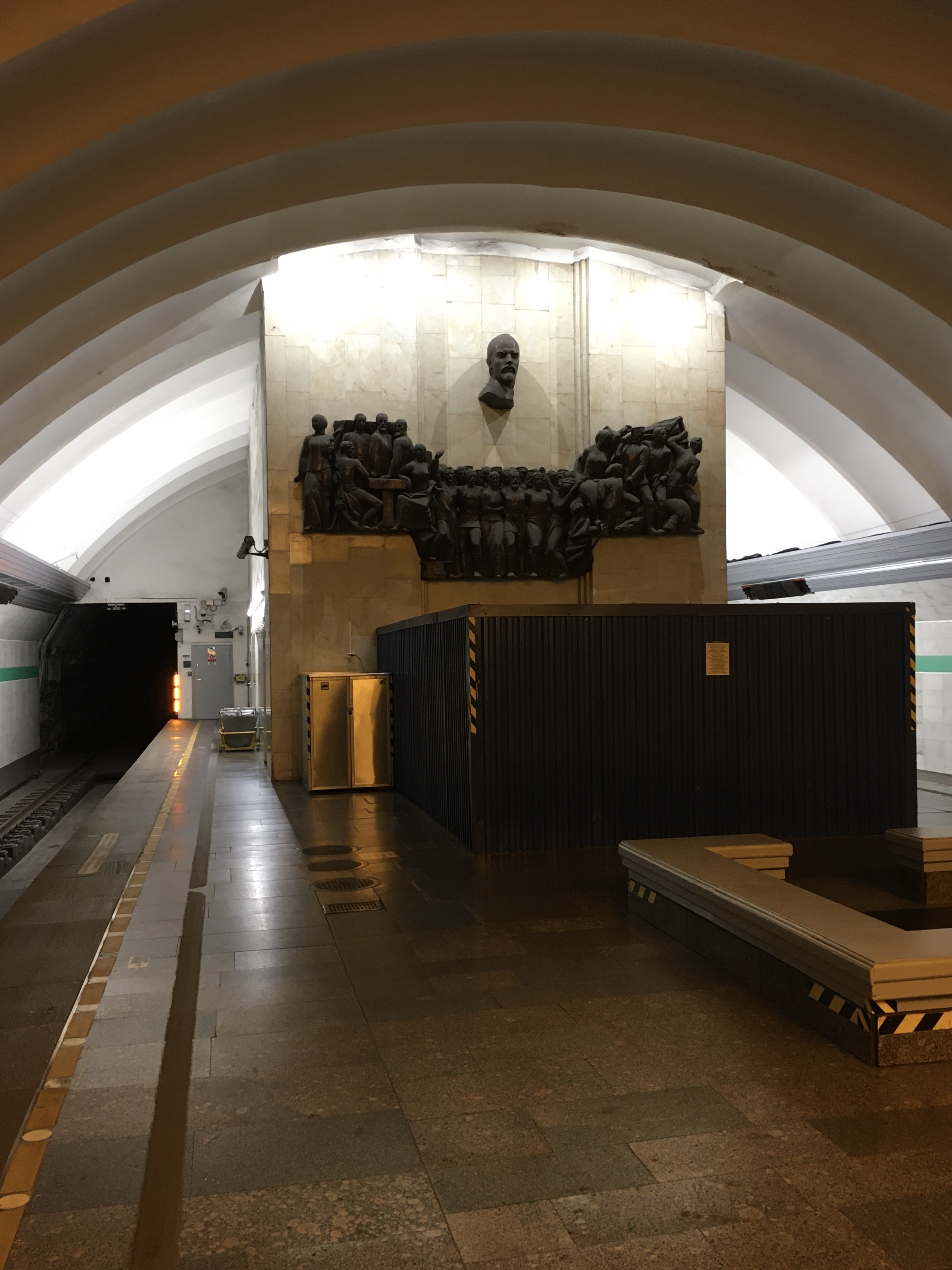 MetroGnom писал(а):В торце станции (у Ленина) появились светодиодные светильники (по штуке на каждом пути).