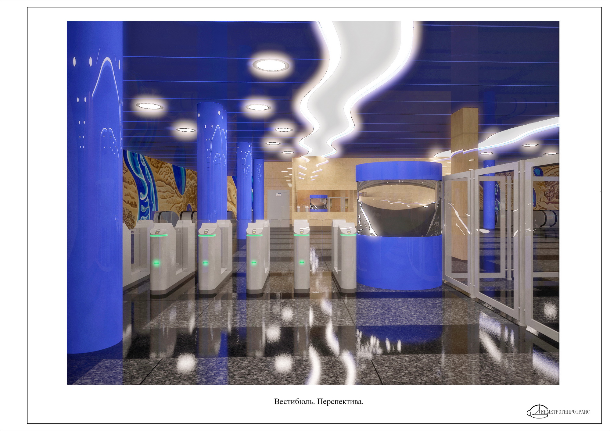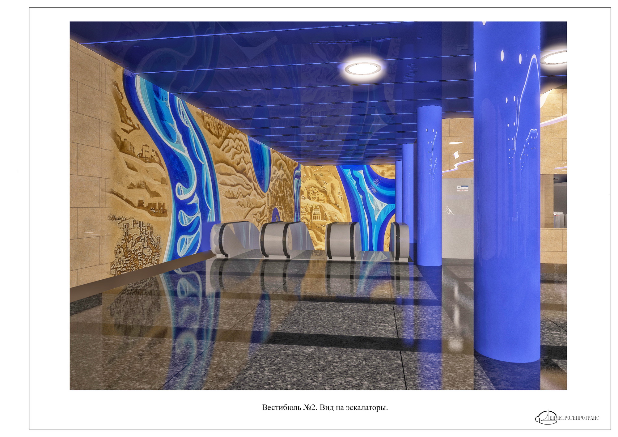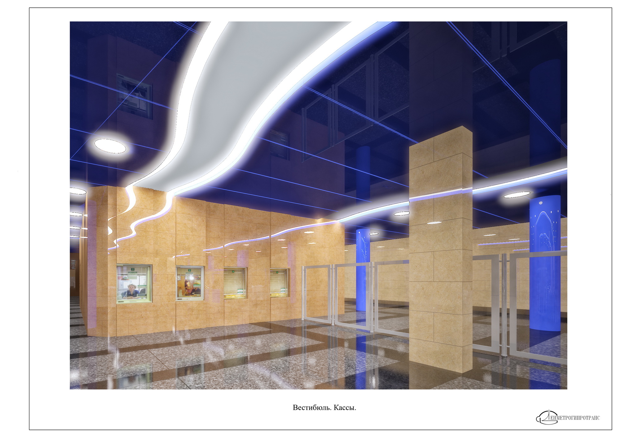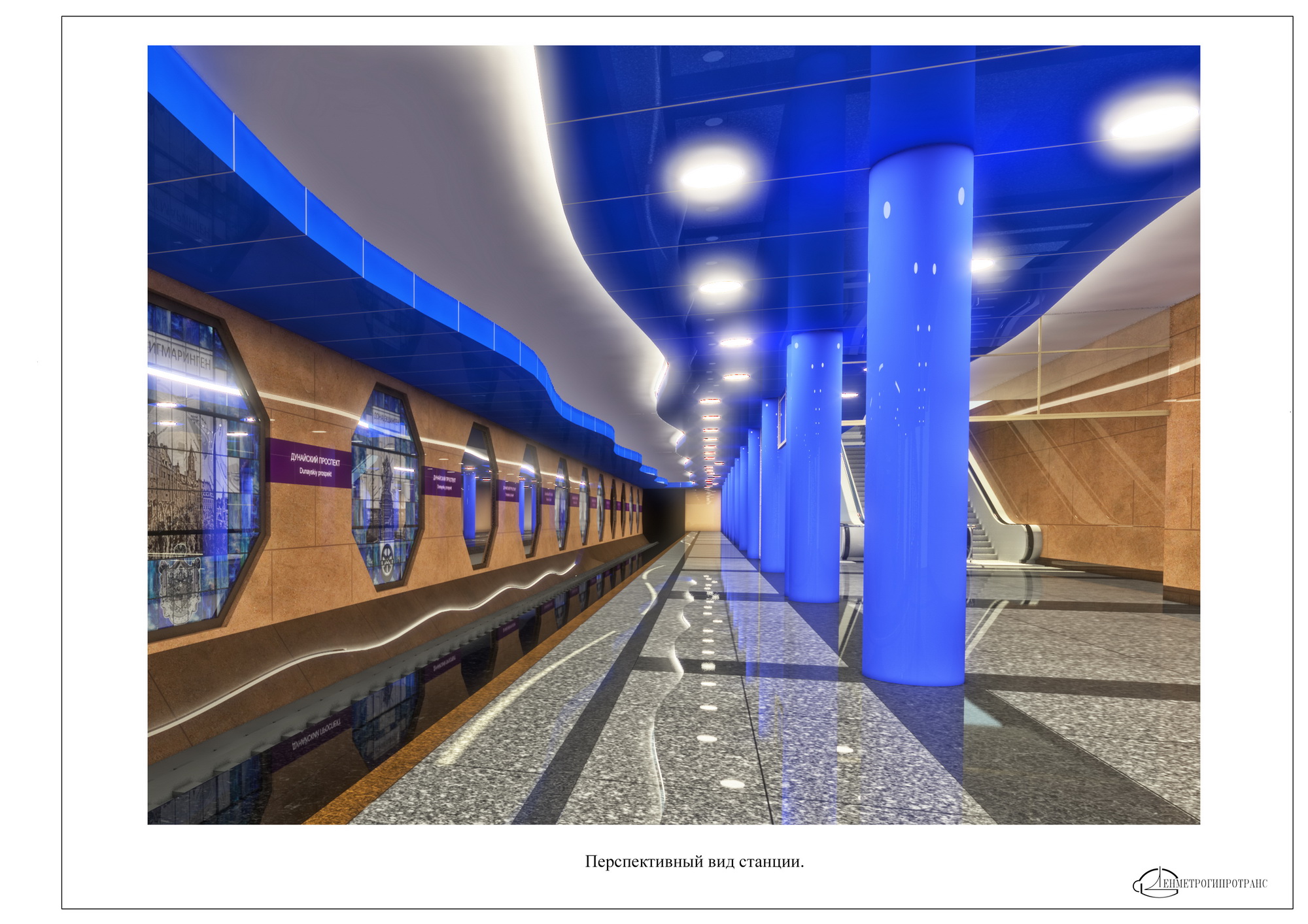 Красивая и современная станция. Синие колонны очень эффектно выглядят на рендере, интересно как они будут в реальности?