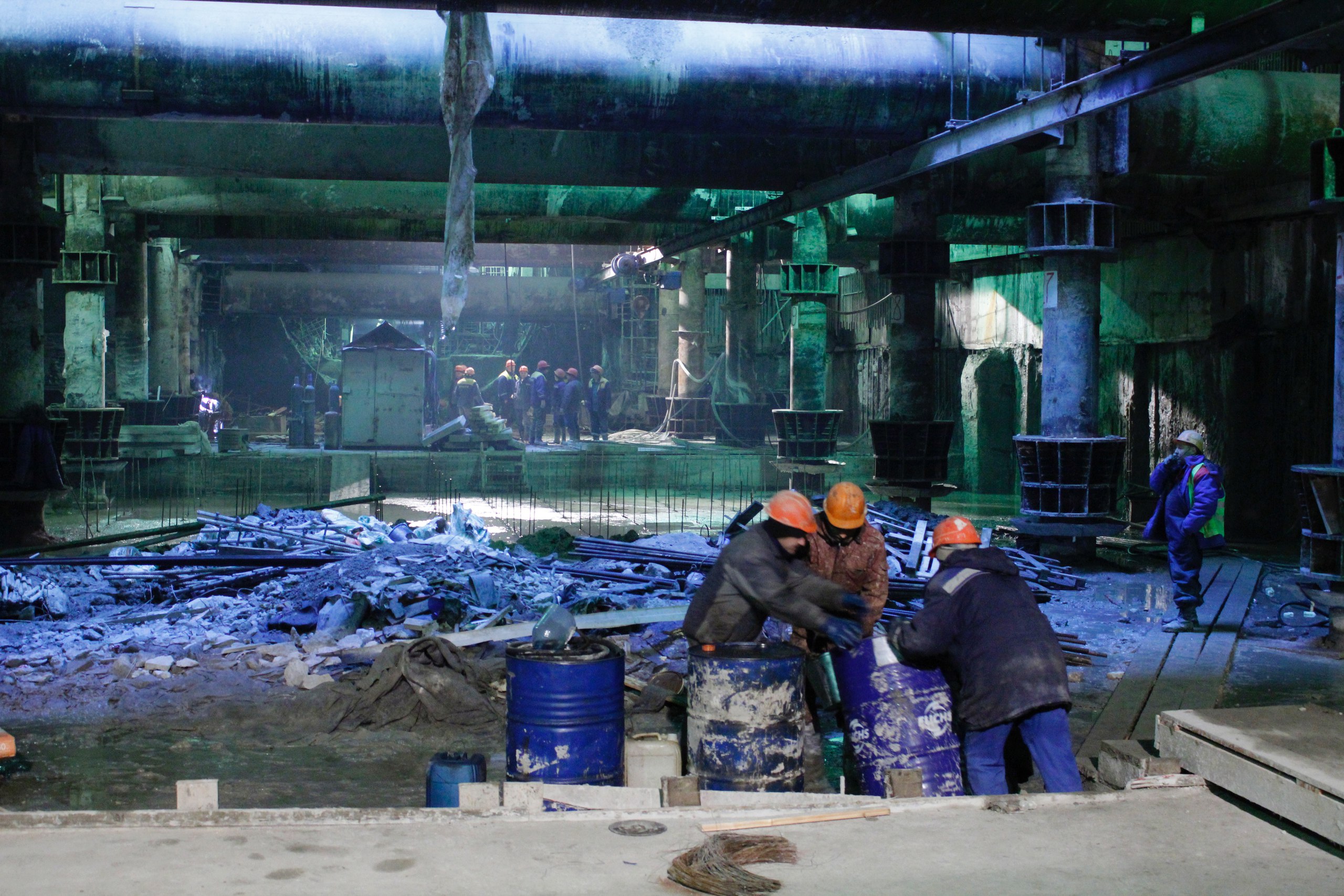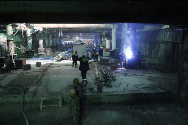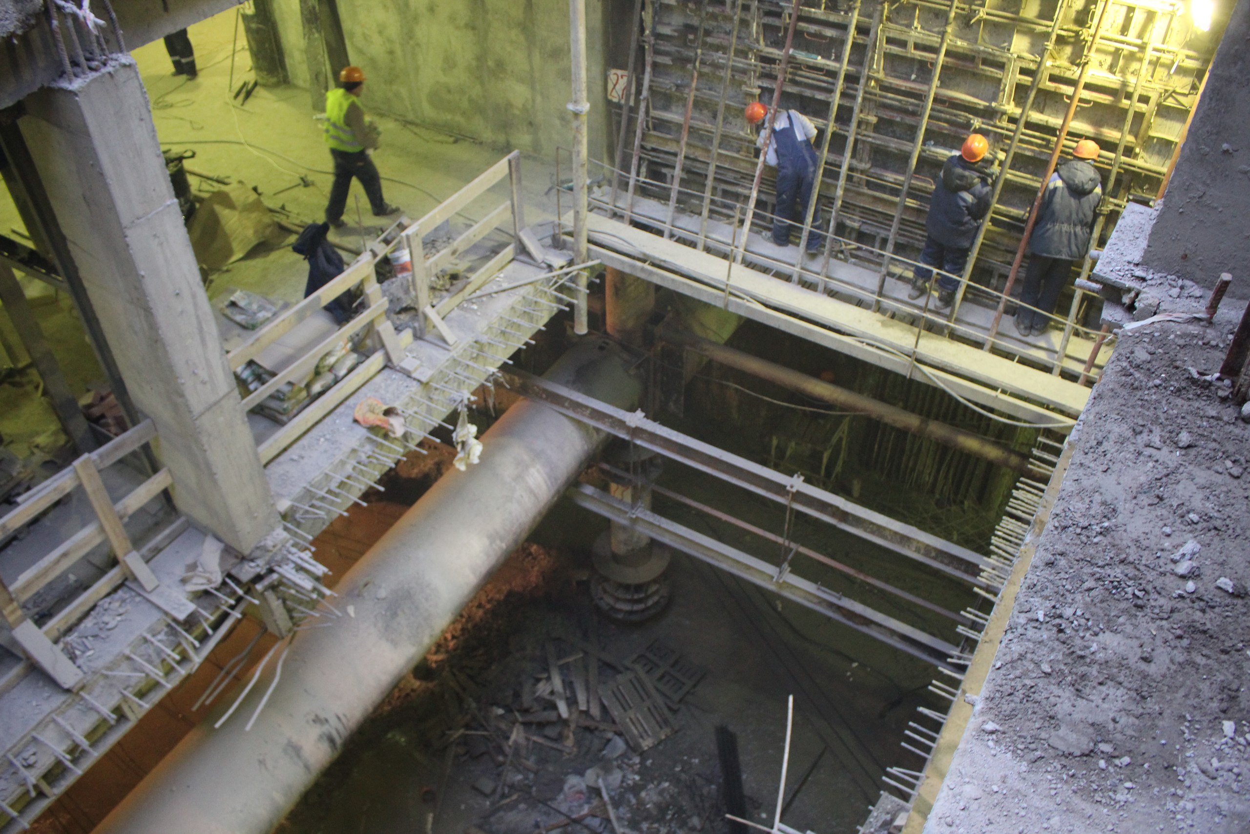 Но прогресс виден. 3 дня назад там только арматурины вертикальные стояли (что видно на фотках выше на этой же странице), а сейчас уже вовсю делают арматурную решетку и призматическое основание центральной путевой стены (на фото к сожалению нет, зато есть на видео).