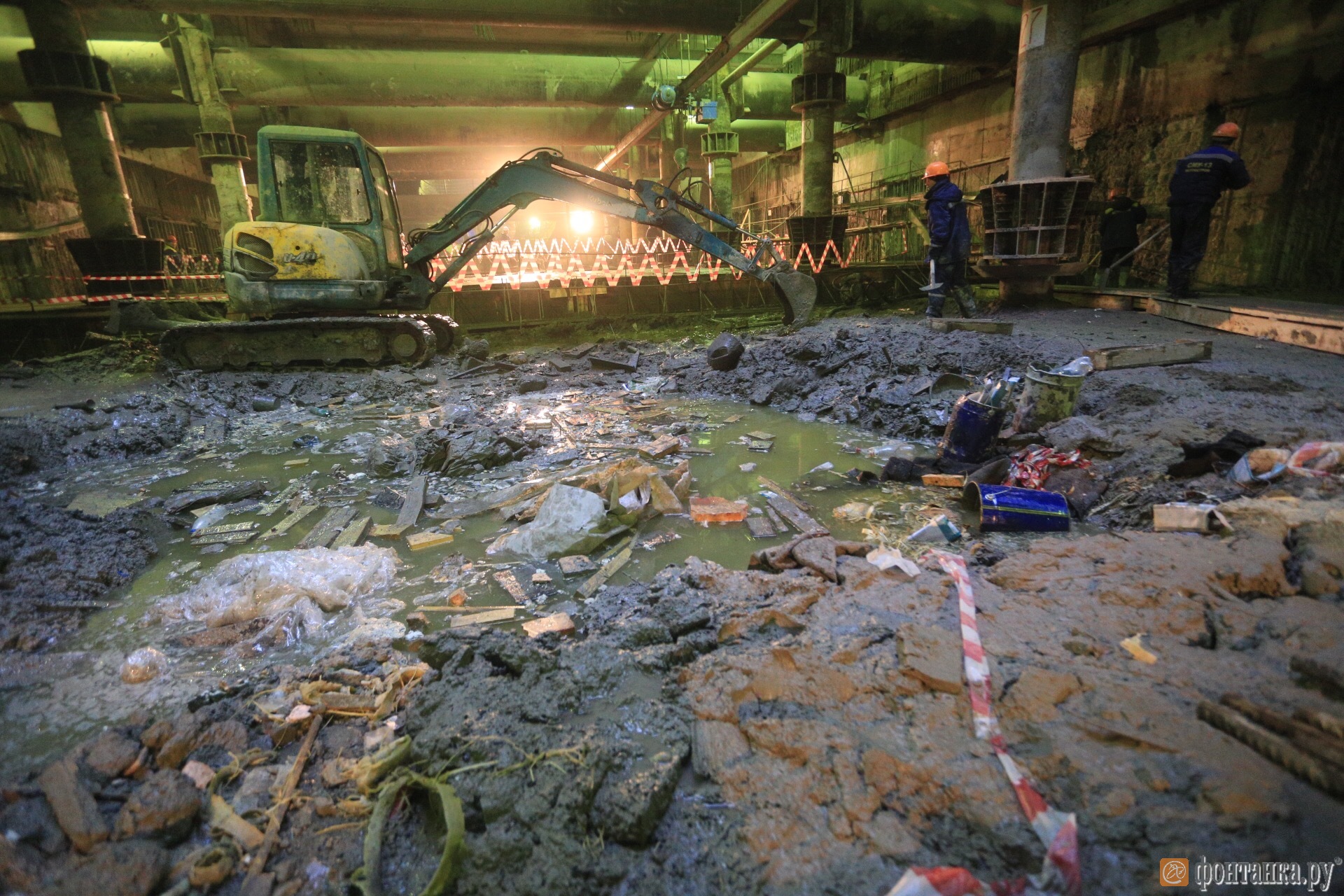 Работы на «Беговой» не прекращаются даже ночью. Благодаря этому отставание в графике удалось сократить с шести месяцев до одного. Но расслабляться рано.
