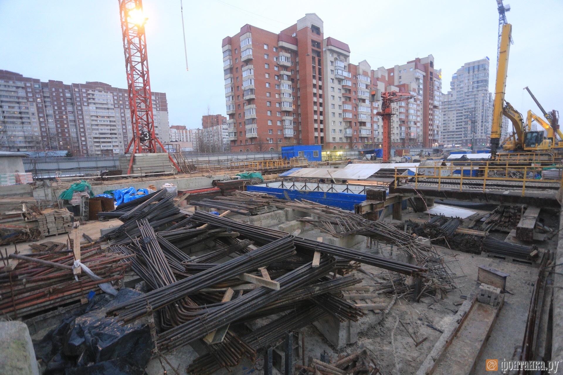 Петербургские специалисты объяснили: в отставании виноваты грунты. Возводить станцию приходится в сложнейших условиях, практически на болоте.