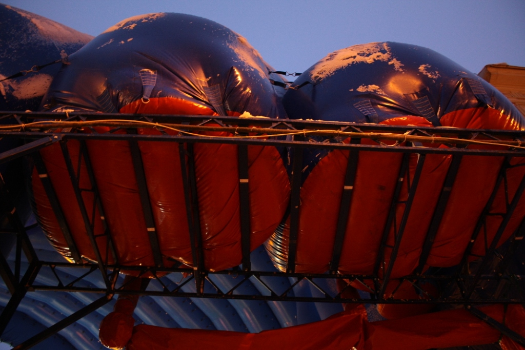 мега монстр из надувных сеций, по высоте превосходящий соседний дом