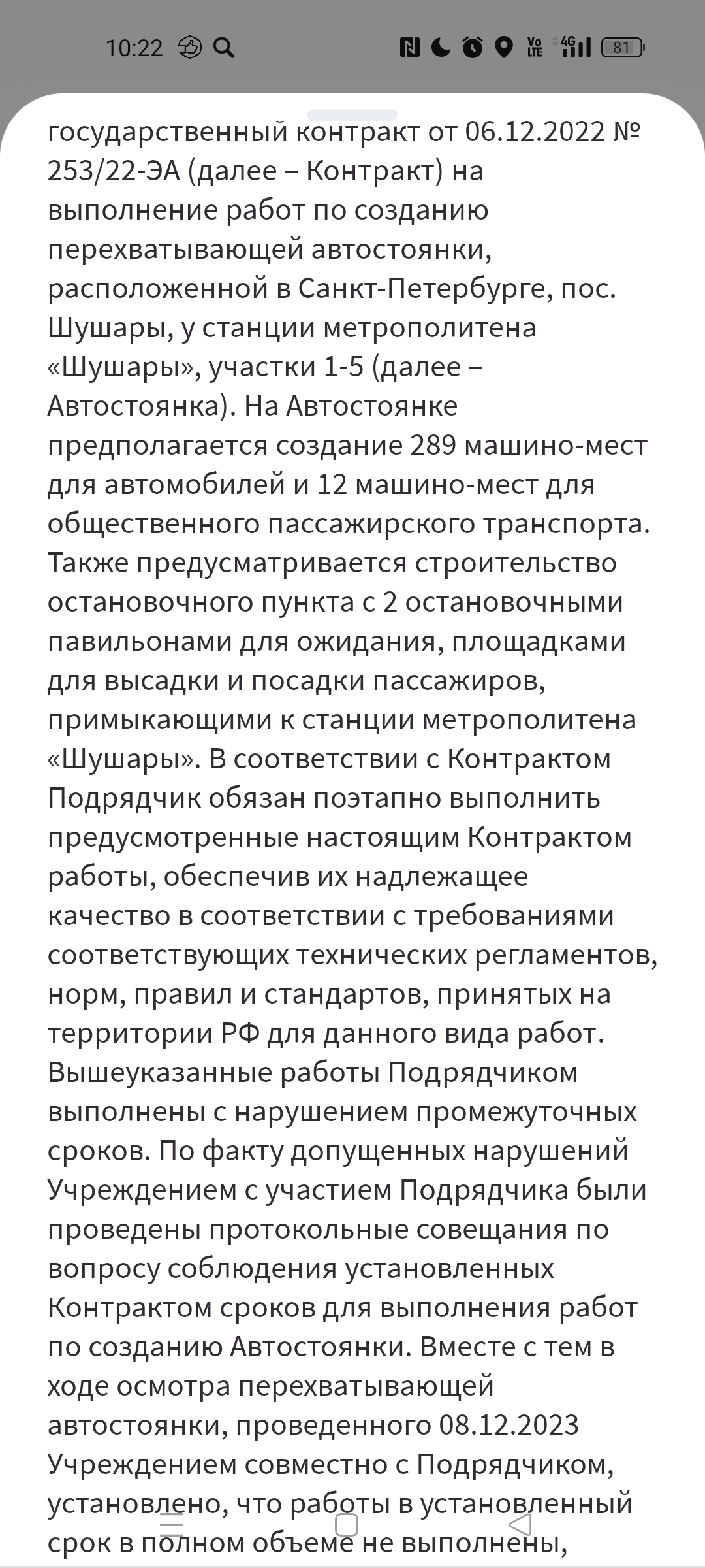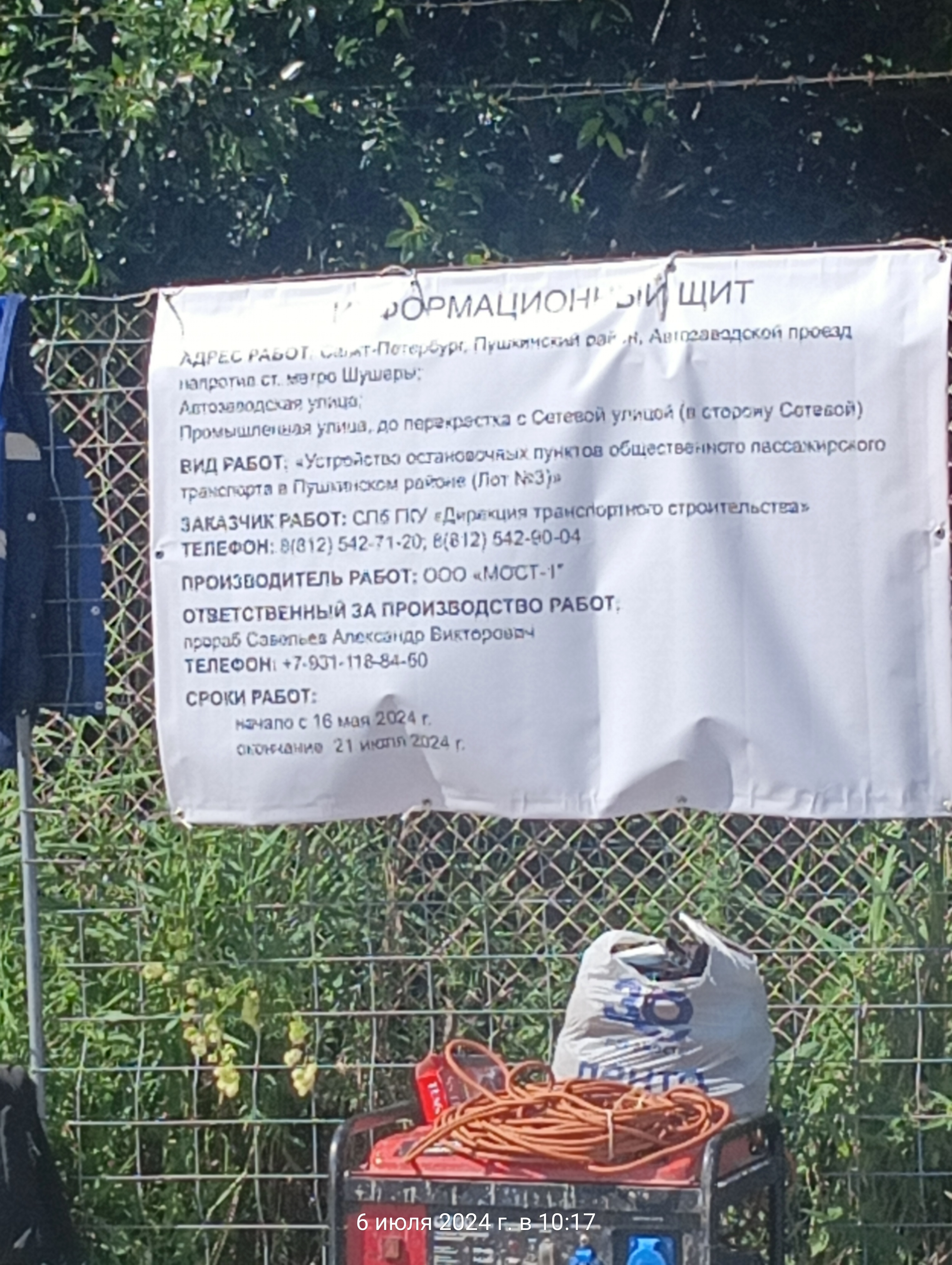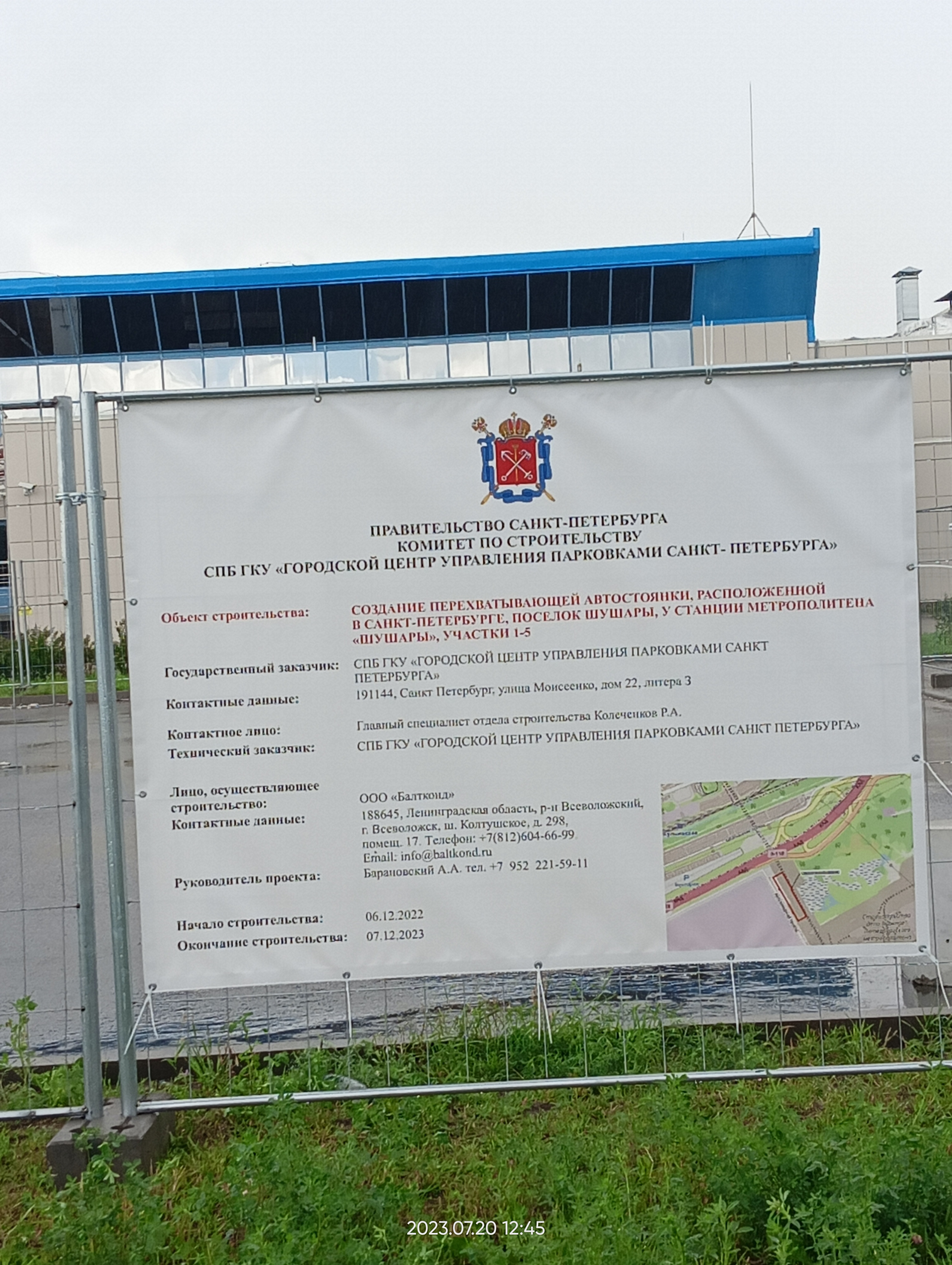 Ответ ведомства по поводу прекращения строительства перехватывающей стоянки у метро Шушары.