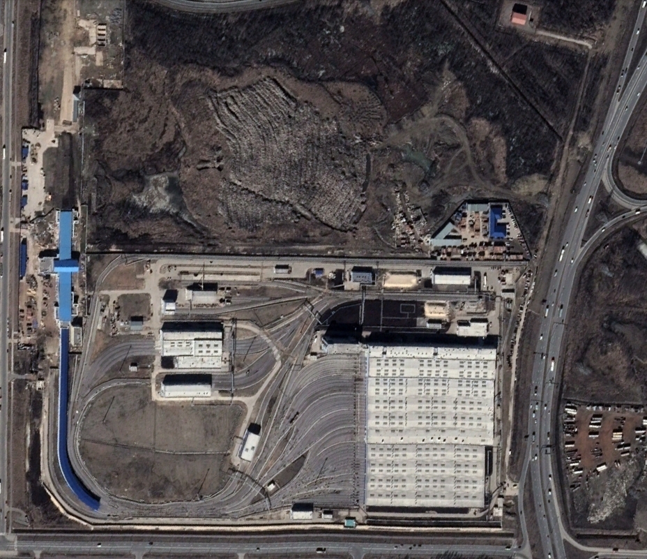 Депо метрополитена "Южное". А справа к КАД — крупнейшая нелегальная мусорная свалка. Размеры можете прикинуть сами.