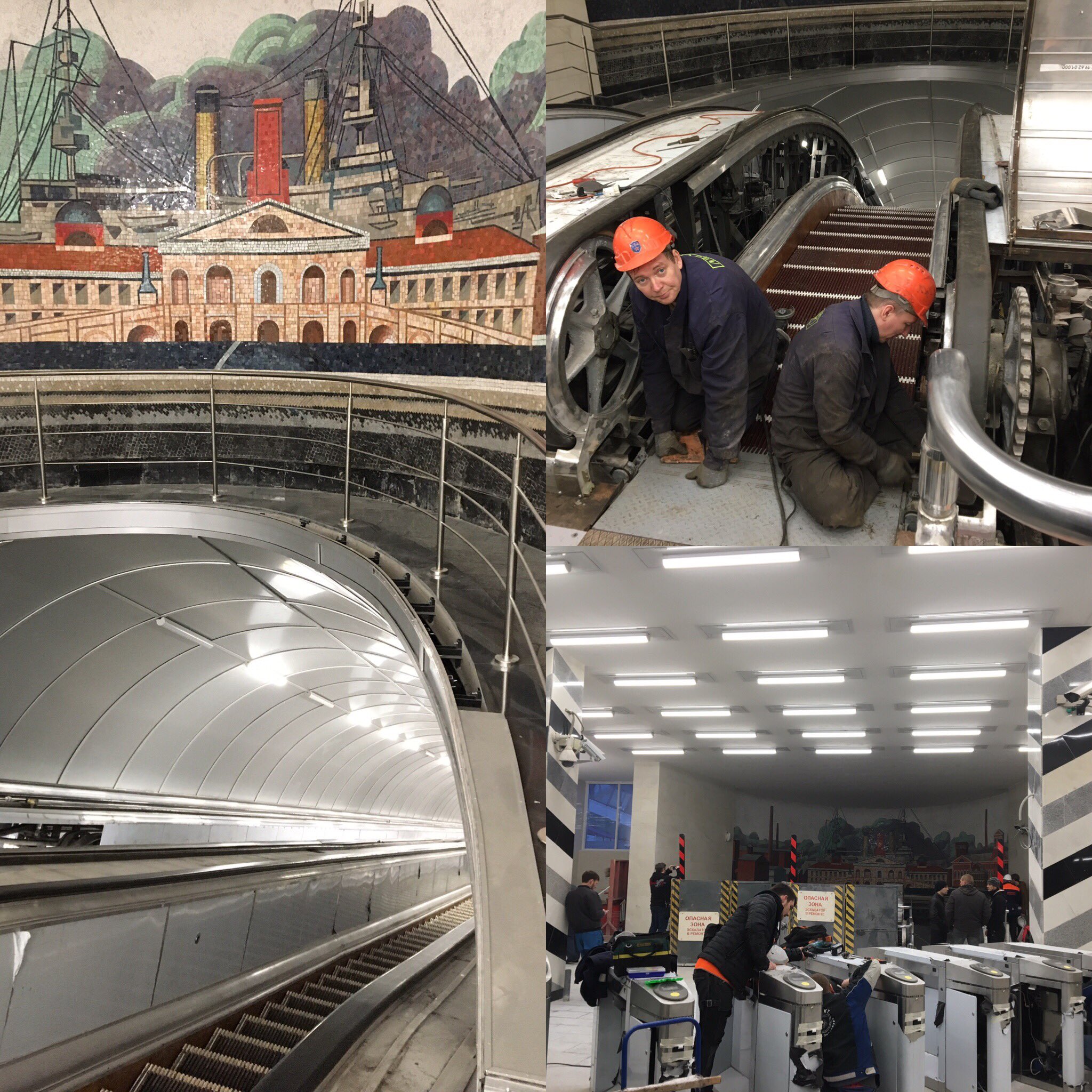 Свеженько, чистенько, очень светло. Мозаика в жизни страшнее, чем на фотках, вестибюль без окон по ощущениям стал еще теснее, чем был. Наклон серый, типовой, балюстрады из нержавейки, без рекламы пока что.