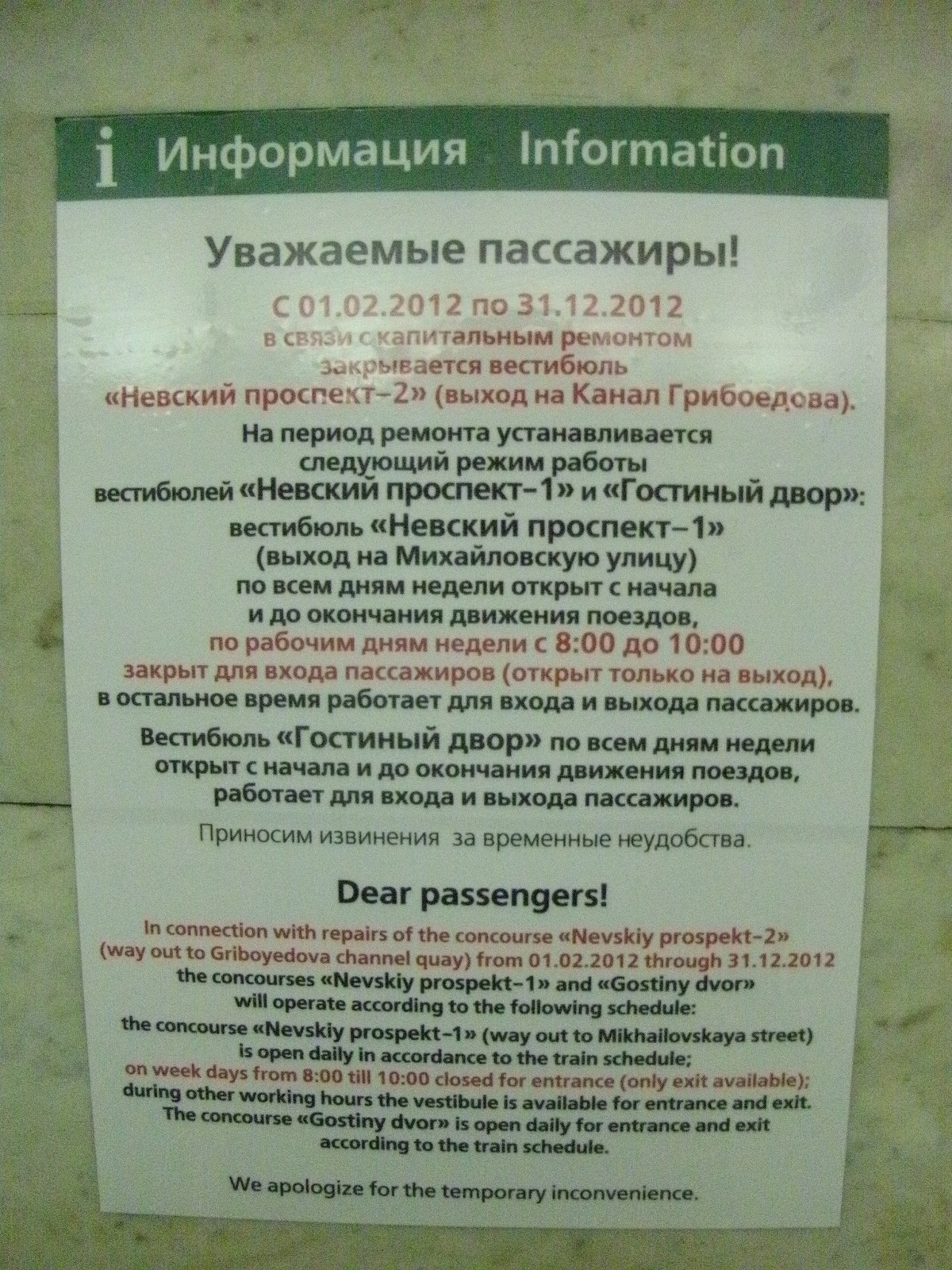 Невский проспект, северный конец платформы.