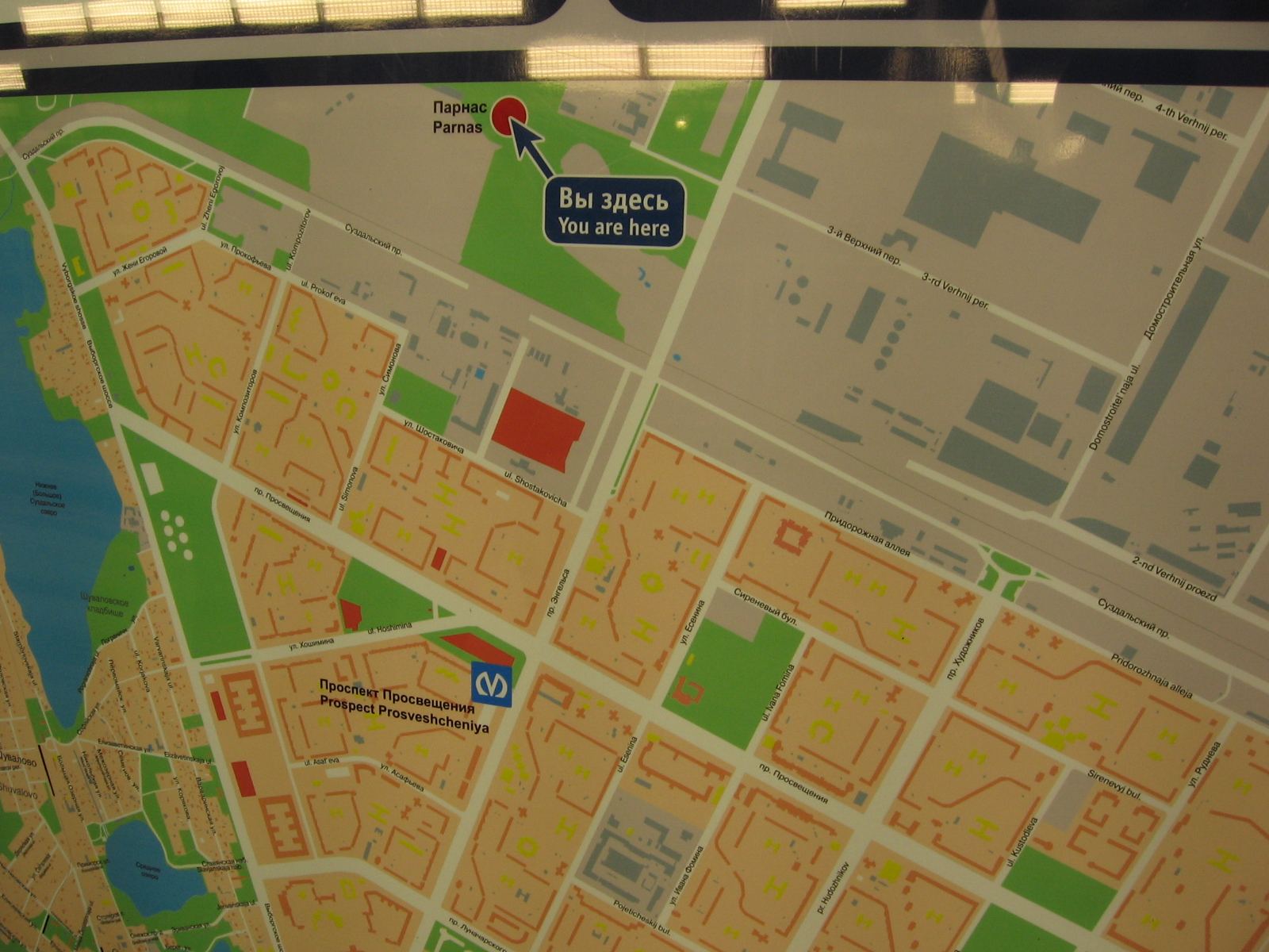 На Парнас прибывает поезд, из него вываливается человек 10-20 народу, огладывается по сторонам с открытым ртом, щупает стены, вываливается на улицу, озирается по сторонам, забирается обратно в метро, глазеет с мотика на витражи и вниз на пути, спускается на платформу, опять озираются глазеют и щупают стены, садятся на поезд и уезжают.