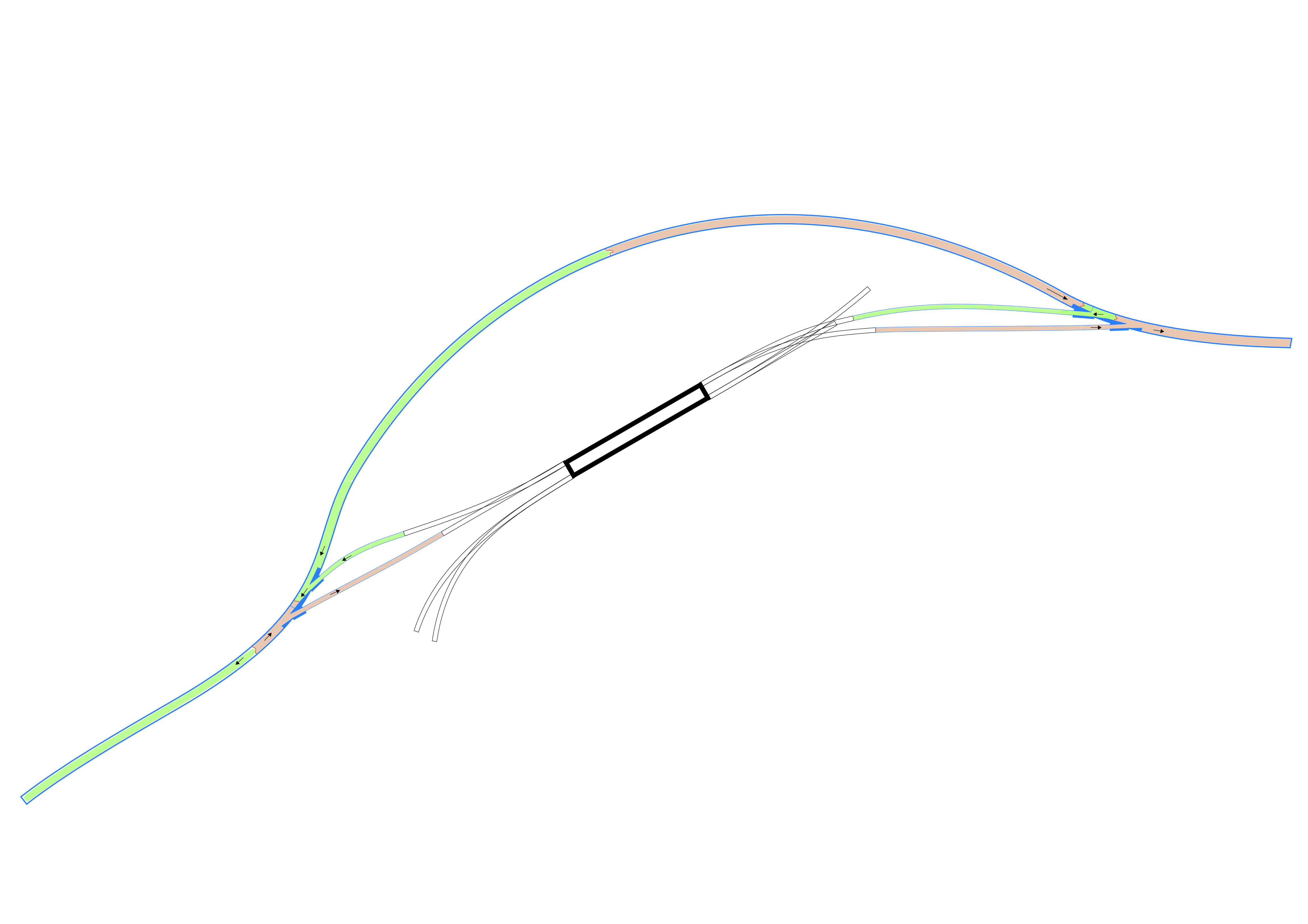Спортивную обходим транзитом и равязываем однопутными тоннелями с двухпутным.