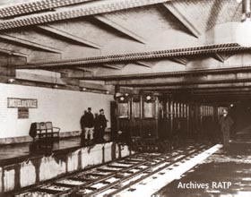 1900: The first trains consisted of three cars with a body made of beech. Picture taken at H&#244;tel de Ville (City Hall) station.