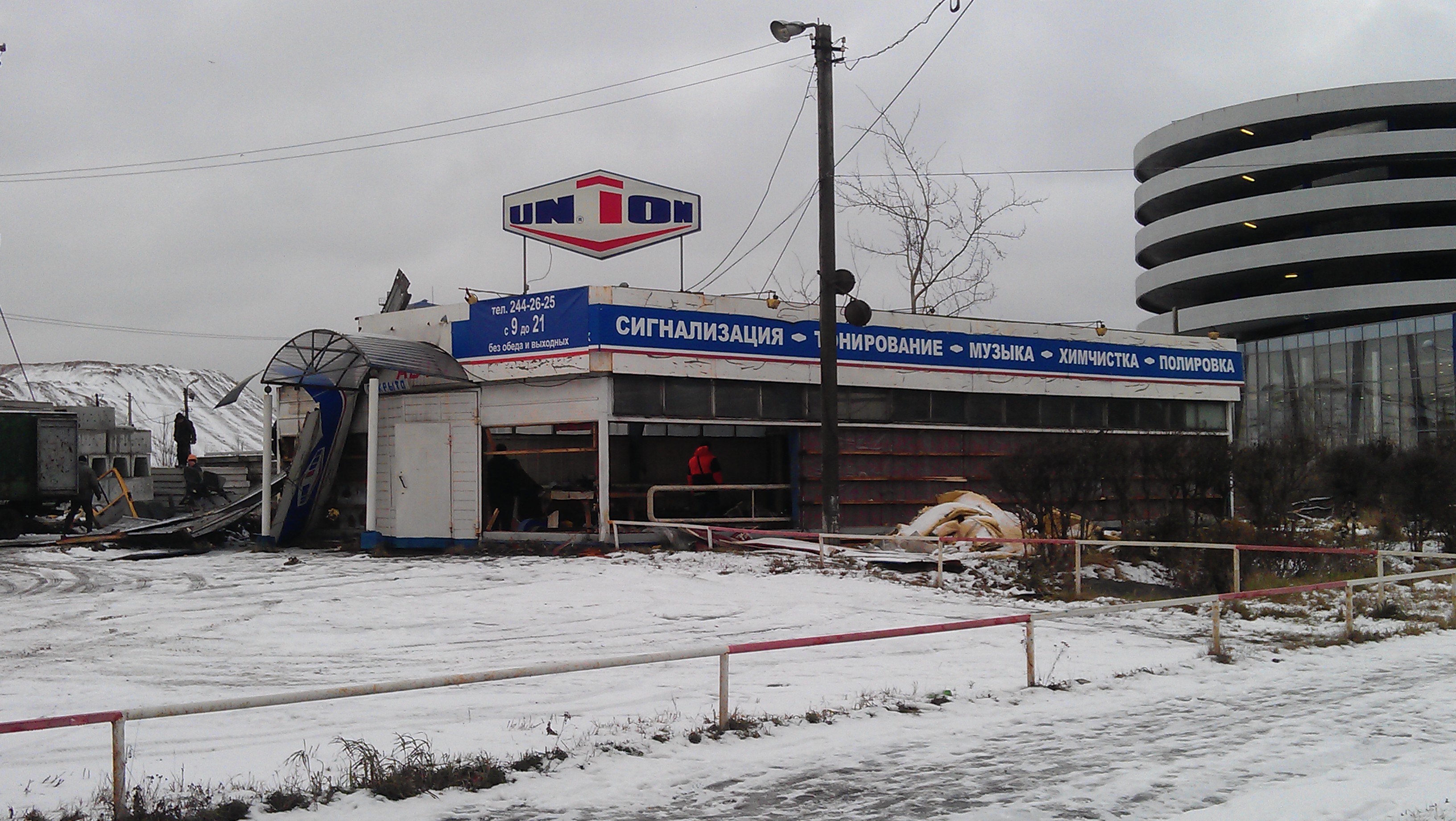 Сегодня на углу Казакова и Жукова стали сносить павильон автосервиса Union