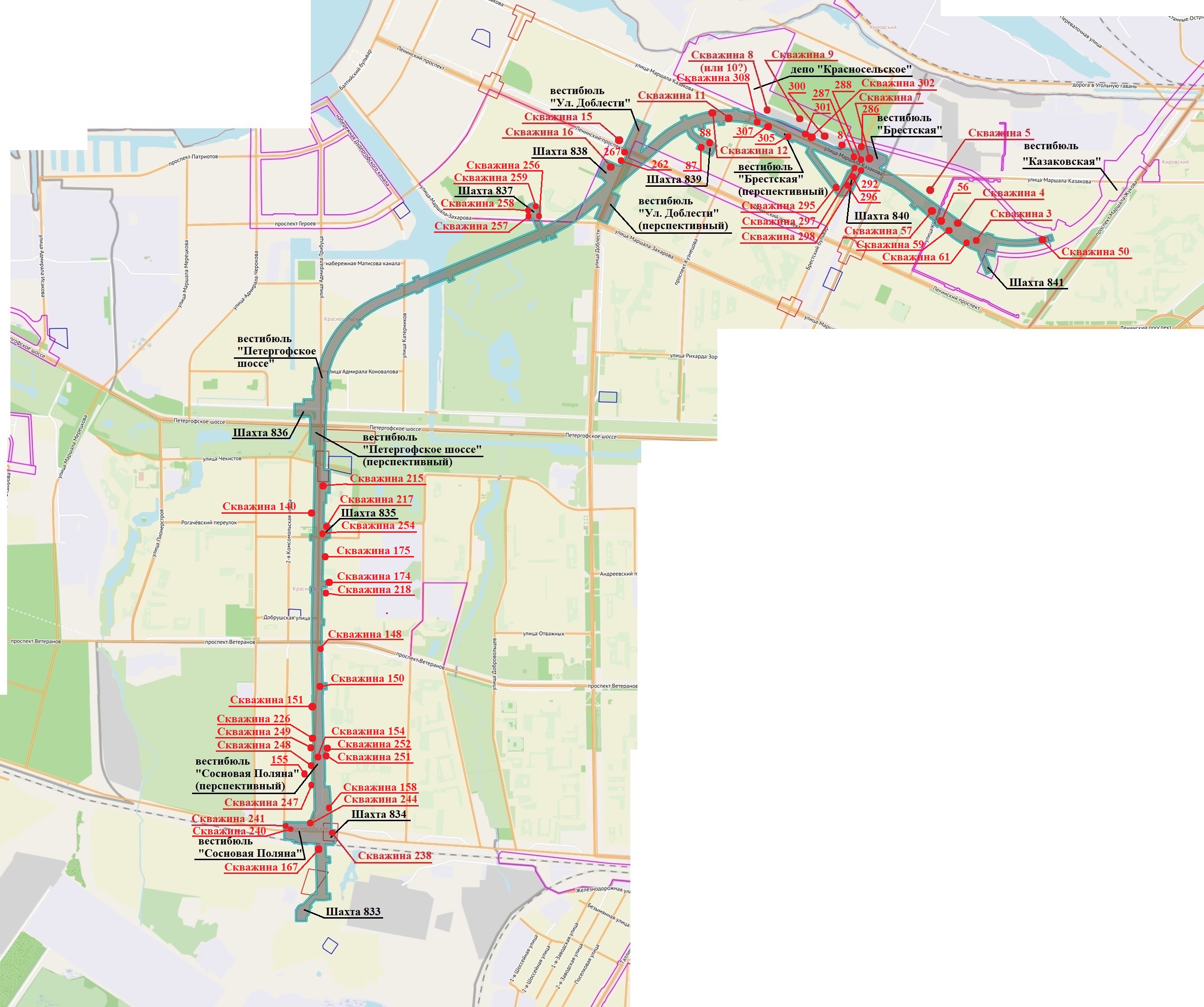 В рамках гос. контракта АО "Метрогипротранс" от 7 ноября 2019 г. № ПМ-21/2019 на выполнение работ по разработке проектной документации по объекту: "Строительство участка Красносельско-Калининской линии метрополитена от станции "Казаковская" до станции "Сосновая поляна" для выполнения инженерно-геологических изысканий выдано 36 новых ордеров по адресам: